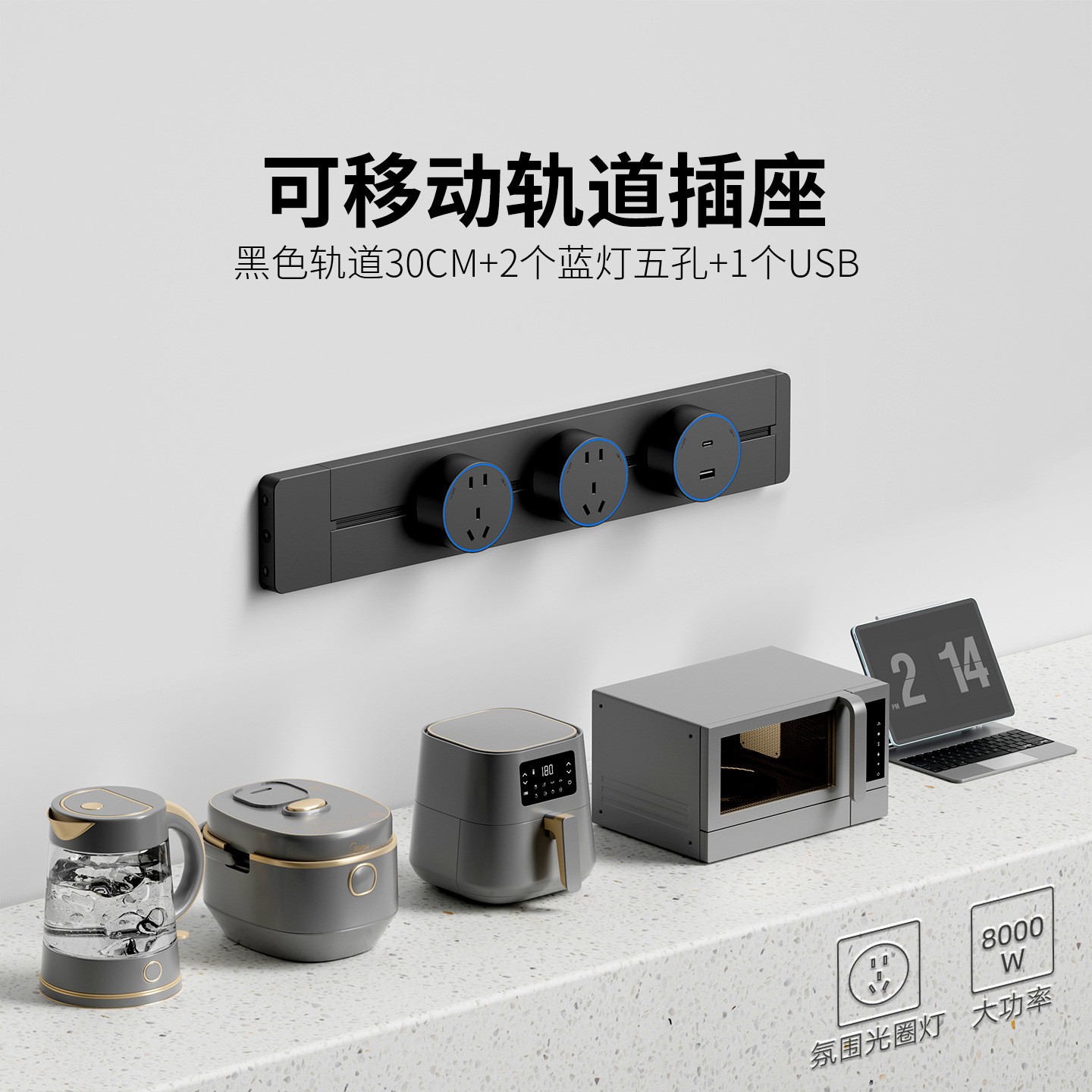明装灰色防尘款30CM+2个五孔+1个USB+C