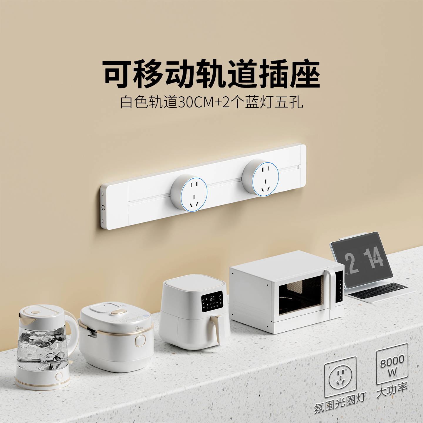 明装白色防尘款30CM+2个五孔