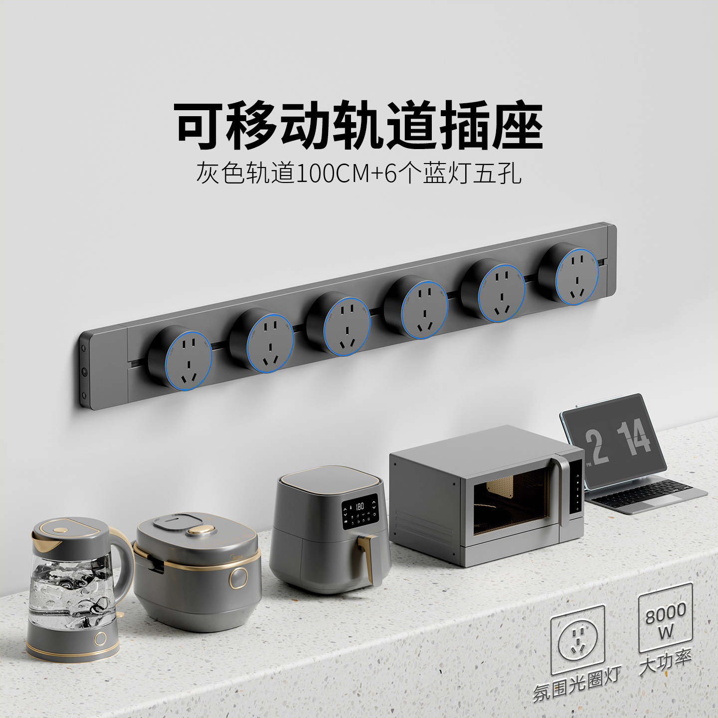 明装灰色防尘款100CM+6个五孔