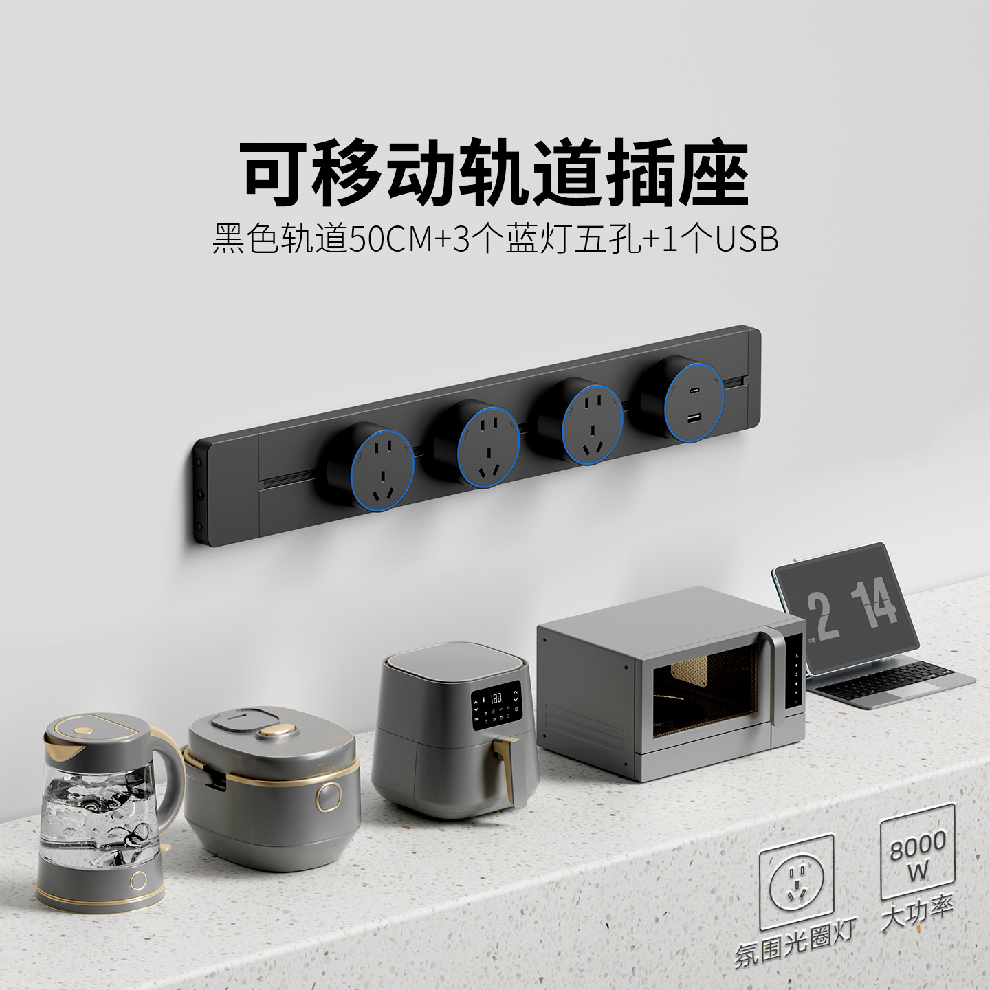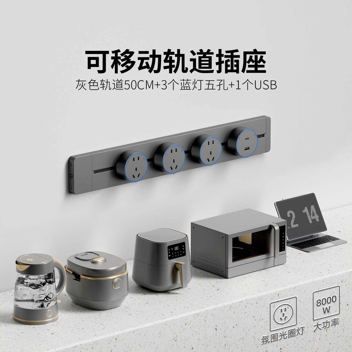 明装灰色防尘款50CM+3个五孔+1个USB+C