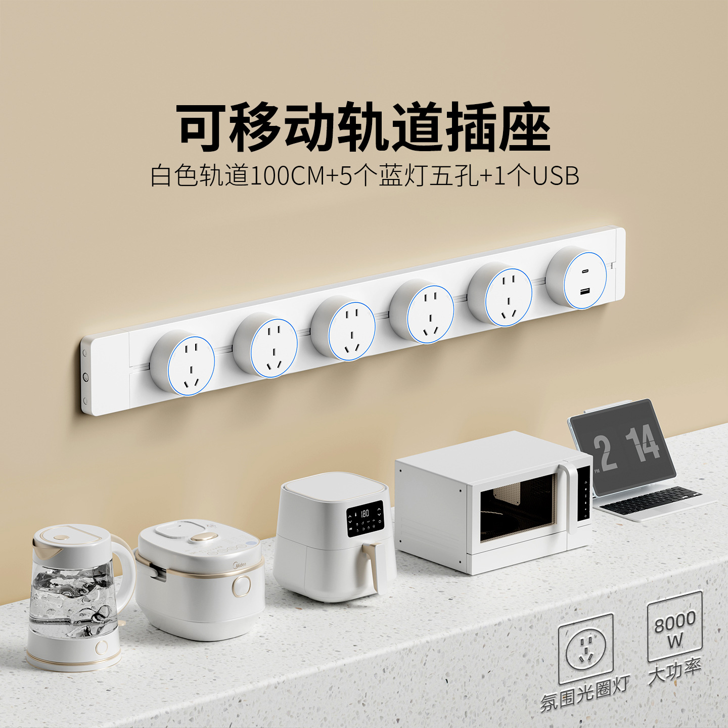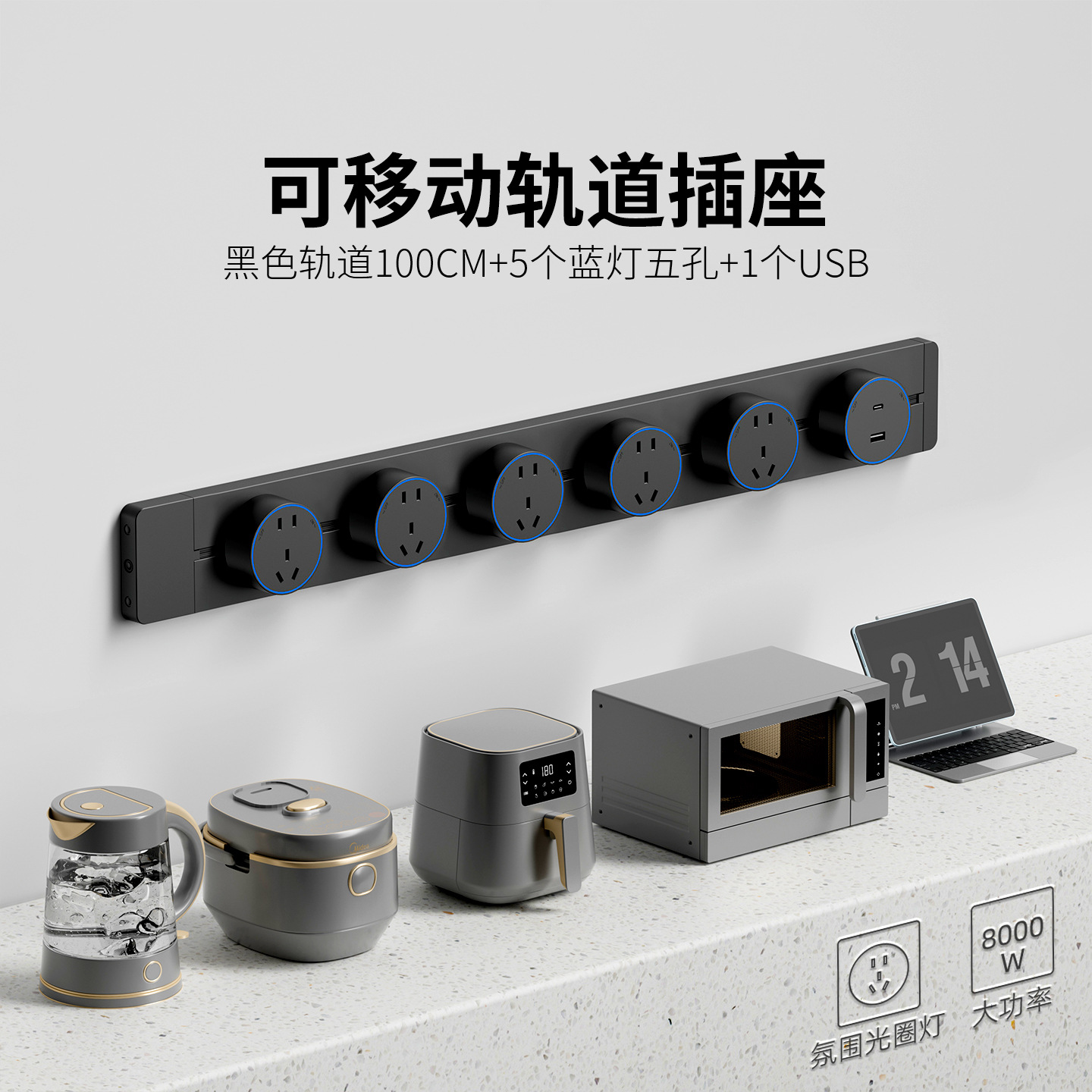 明装白色防尘款100CM+5个五孔+1个USB+C