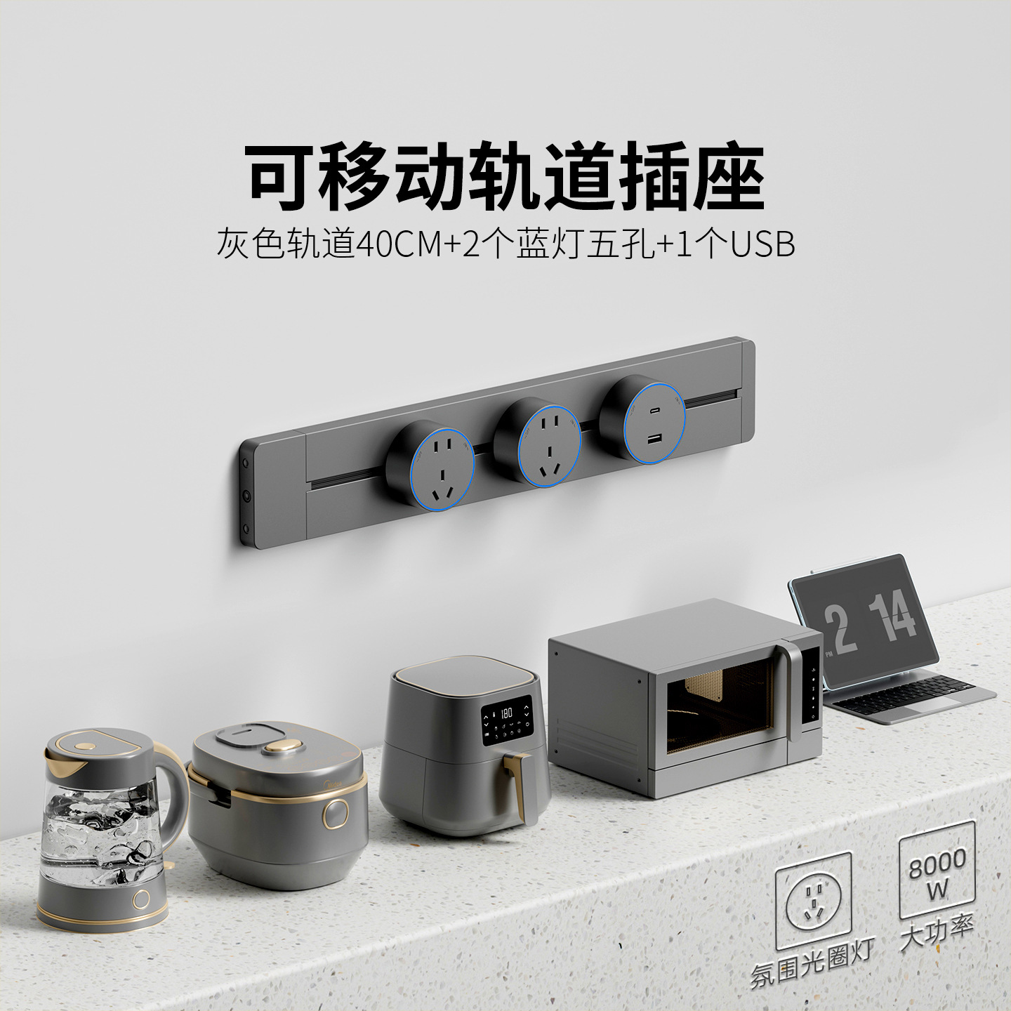 明装灰色防尘款40CM+2个五孔+1个USB+C