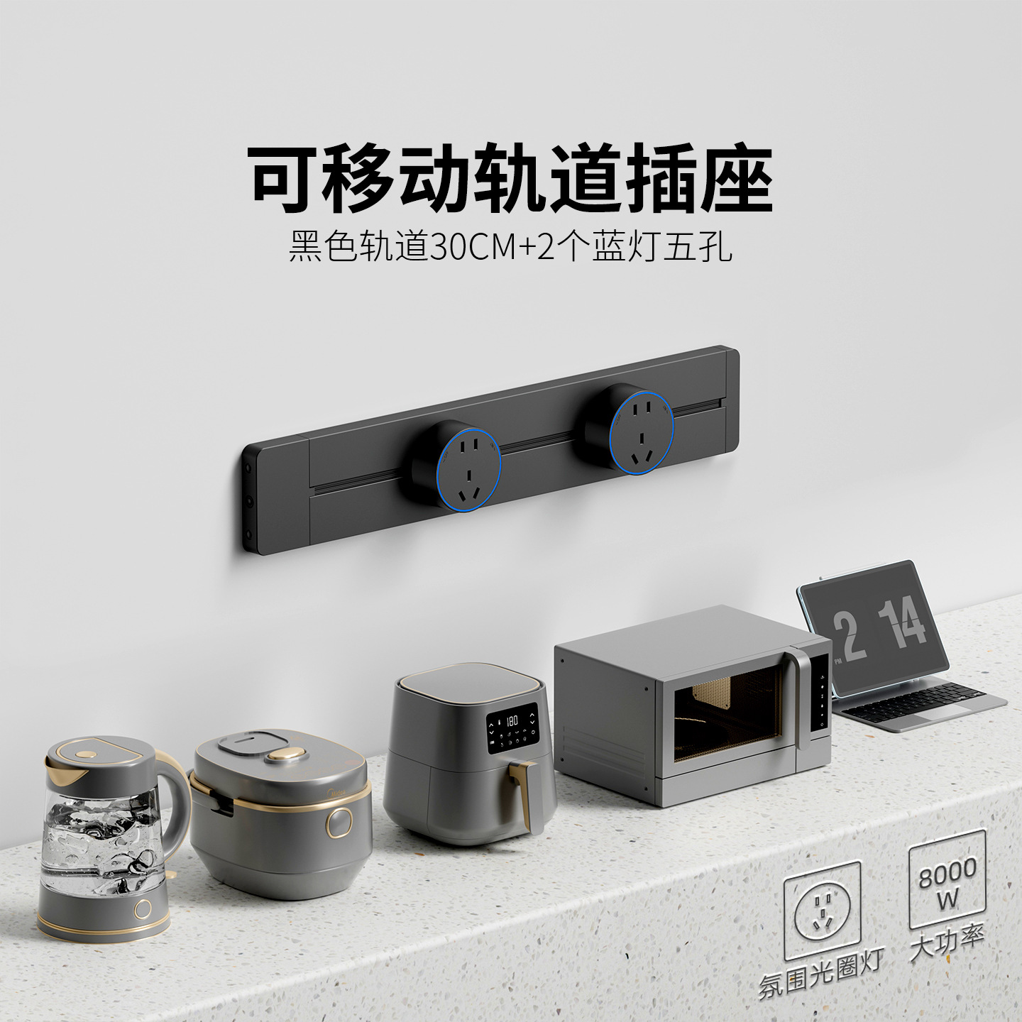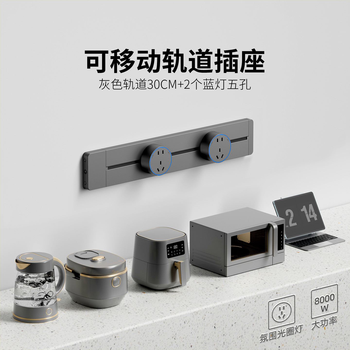 明装灰色防尘款30CM+2个五孔