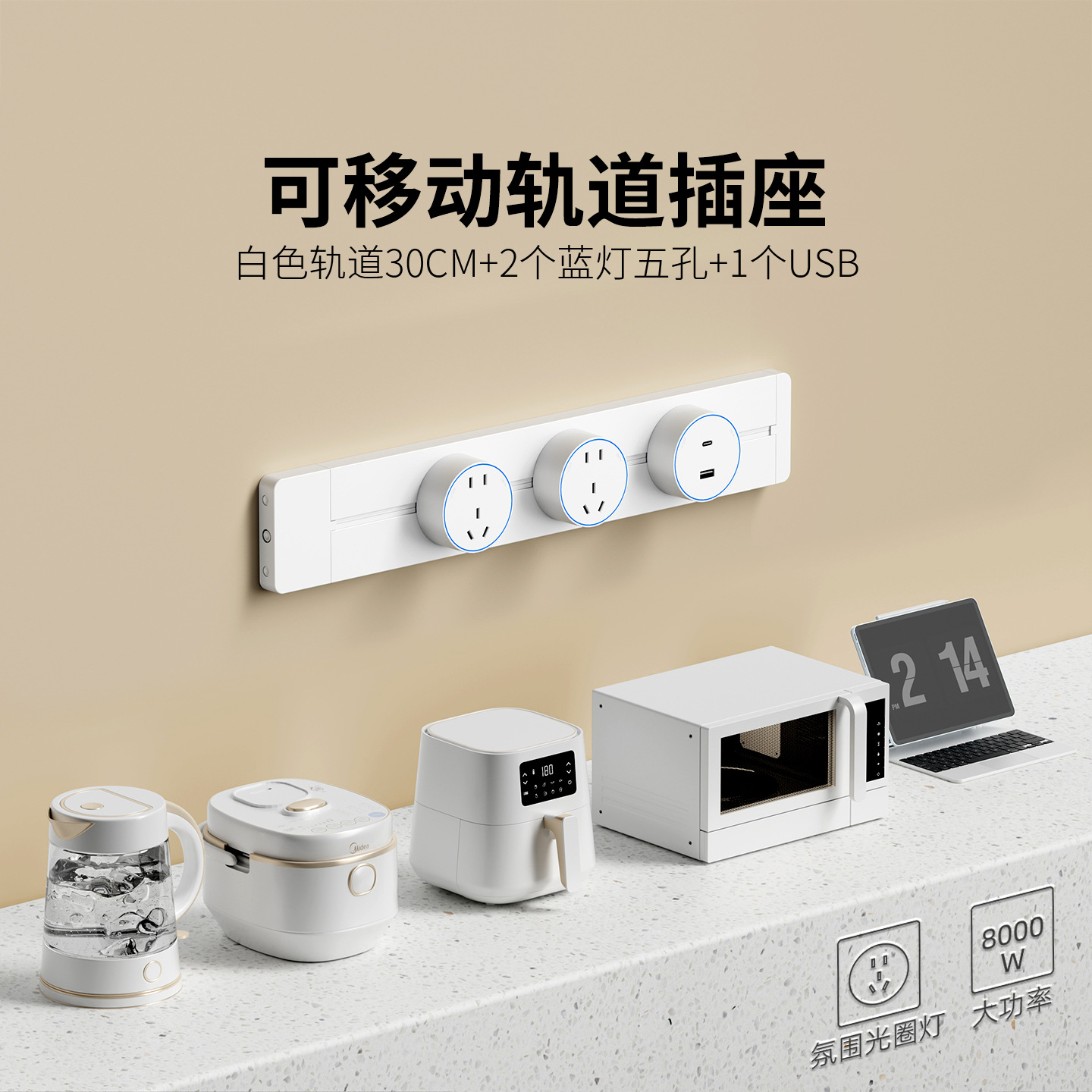明装白色防尘款30CM+2个五孔+1个USB+C