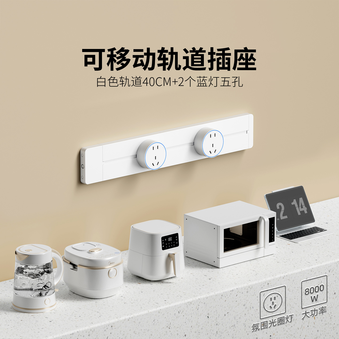 明装白色防尘款40CM+2个五孔