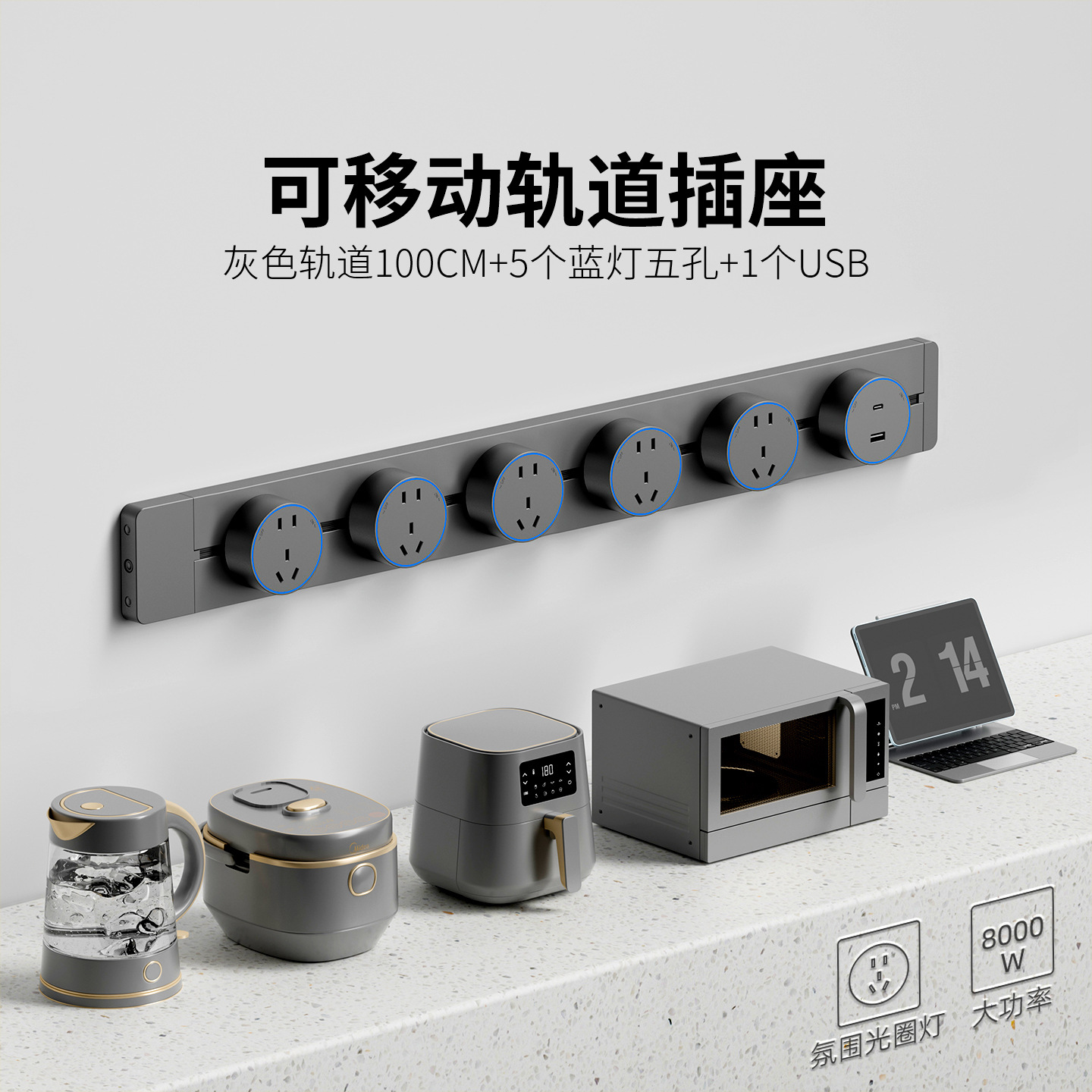 明装灰色防尘款100CM+5个五孔+1个USB+C