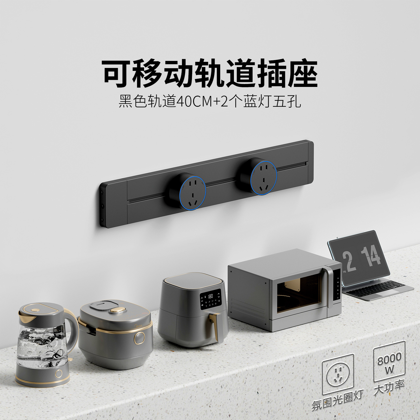 明装灰色防尘款40CM+2个五孔