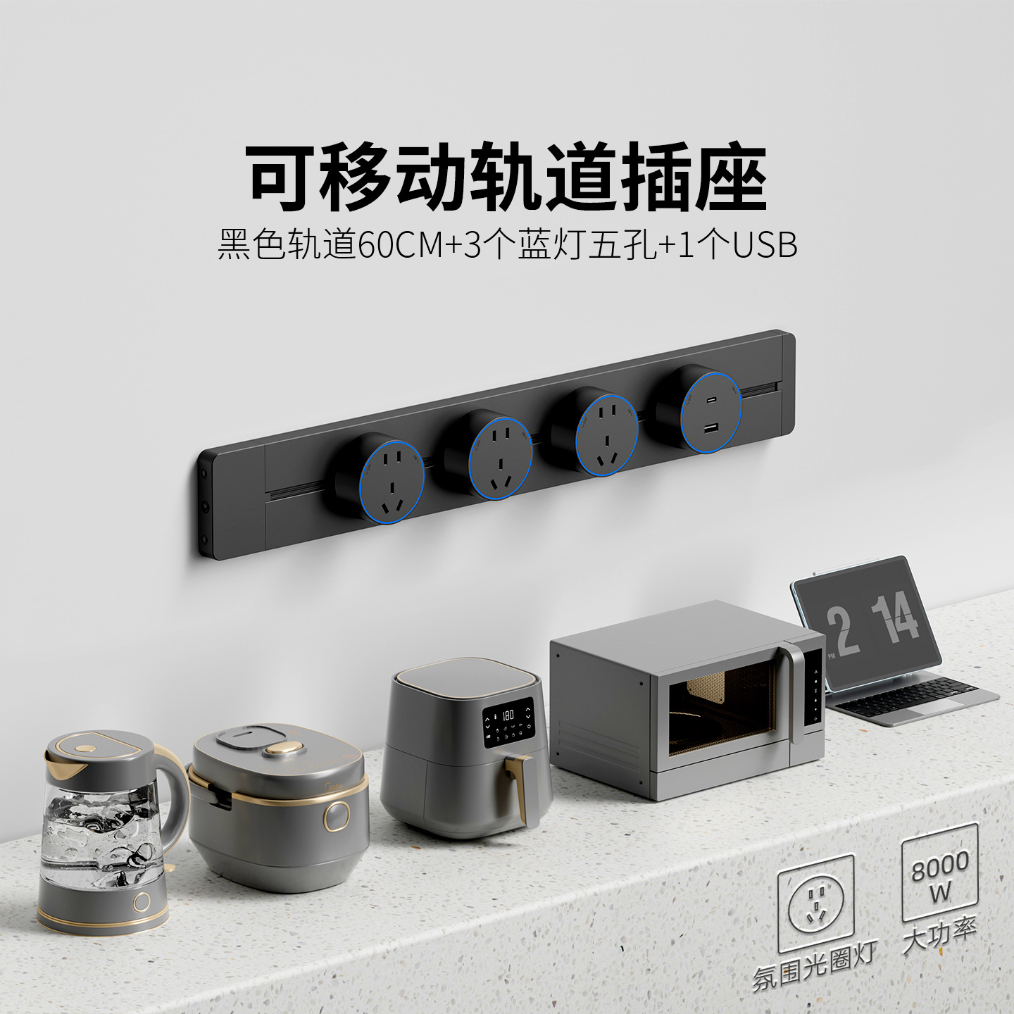 明装灰色防尘款80CM+4个五孔+1个USB+C