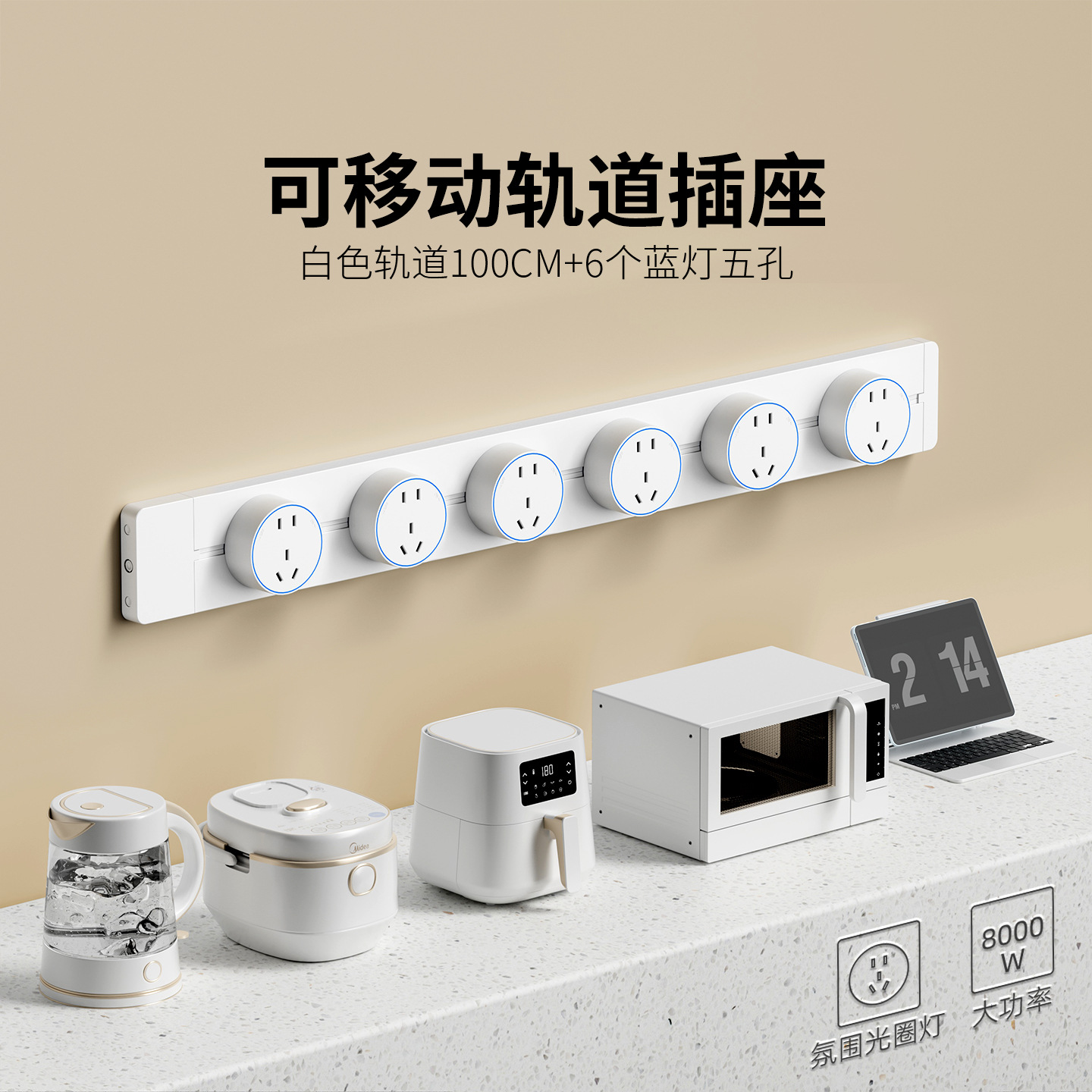 明装白色防尘款100CM+6个五孔