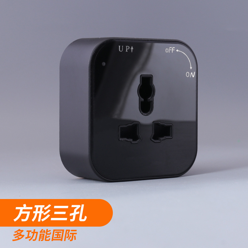 黑色方形多三孔插座