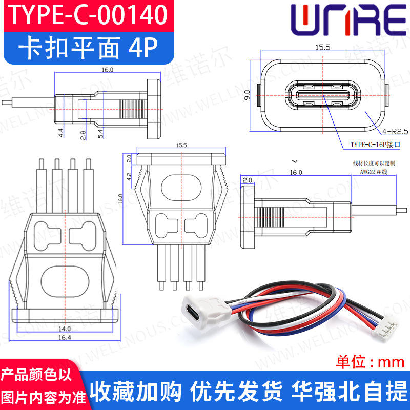 type-c-00140卡扣平面4P白色
