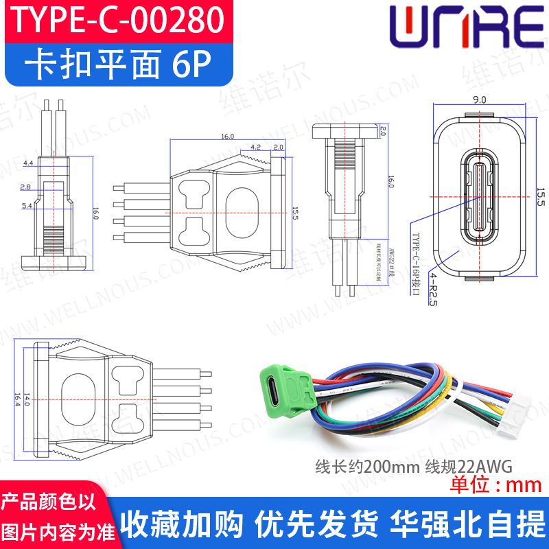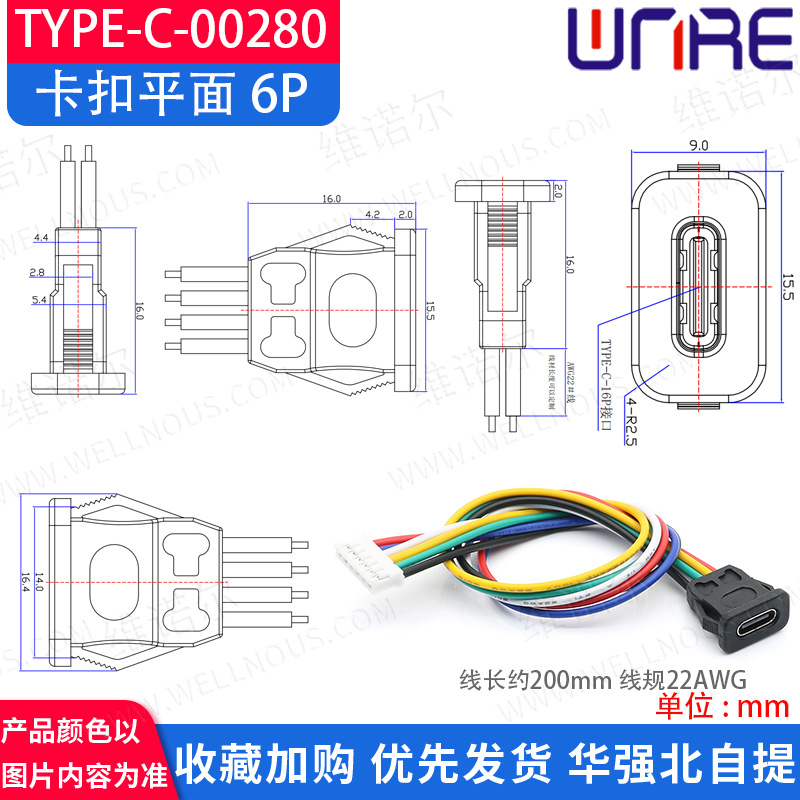 type-c-00280卡扣平面6P黑色