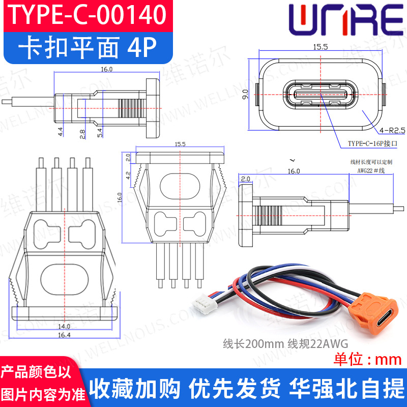 type-c-00140卡扣平面4P橙色