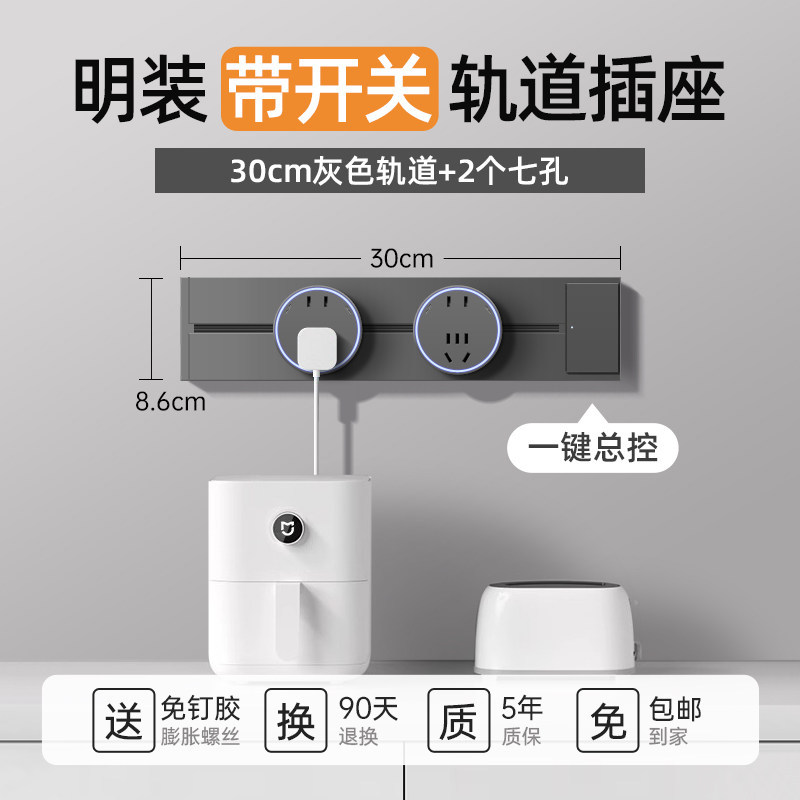 灰色40CM轨道+3个蓝光七孔插