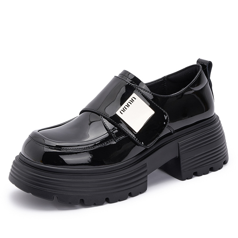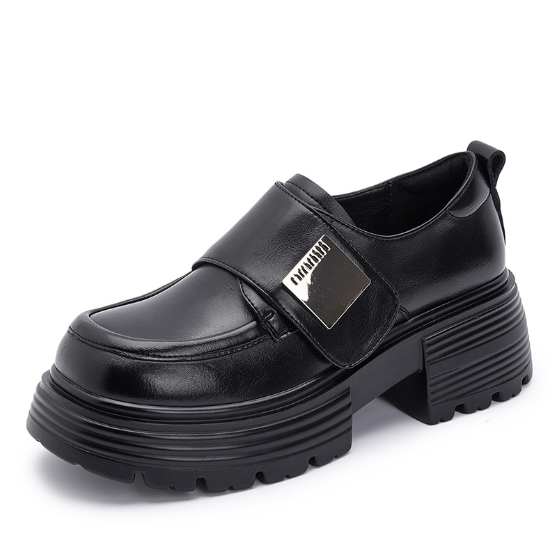Platform loafers women's new 2026 spring Velcro all-match anti-blister height increasing leisure black leather shoes women's anti-blister