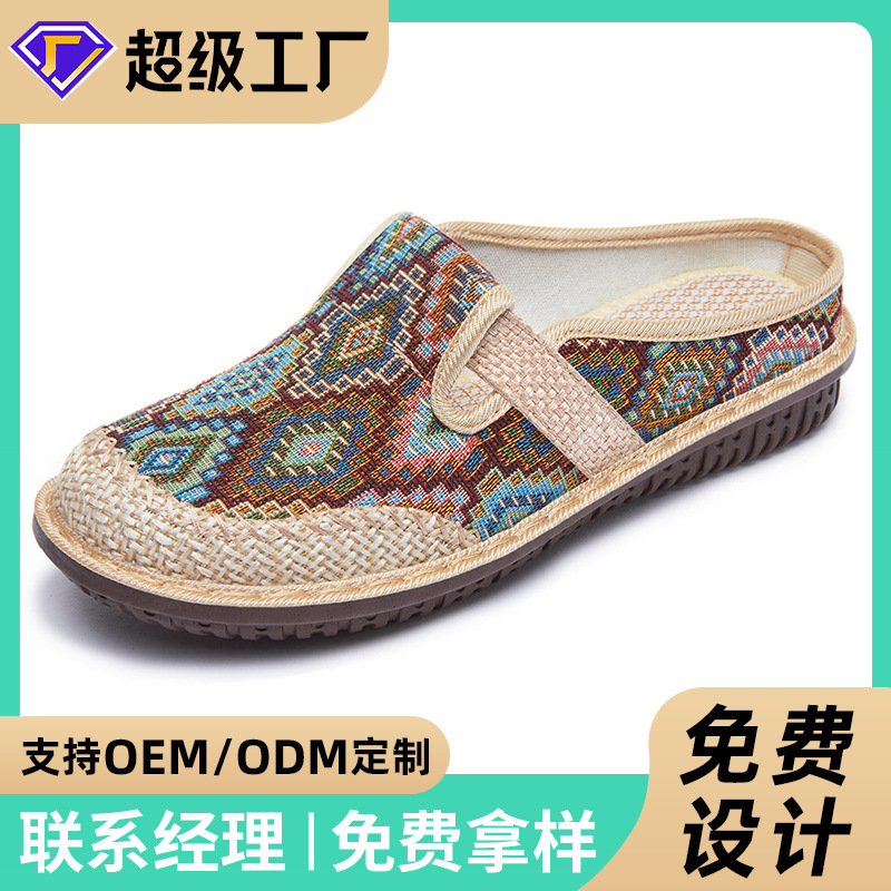 jinshiyuan women's casual shoes customized processing ethnic style embroidered shoes slip-on toe cap semi slipper versatile single-layer shoes