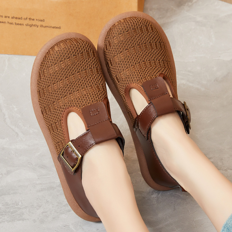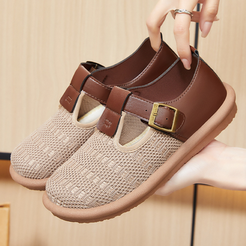 women's shoes spring new simple and versatile casual shoes stylish mom shoes breathable mesh shoes color matching buckle lazy shoes