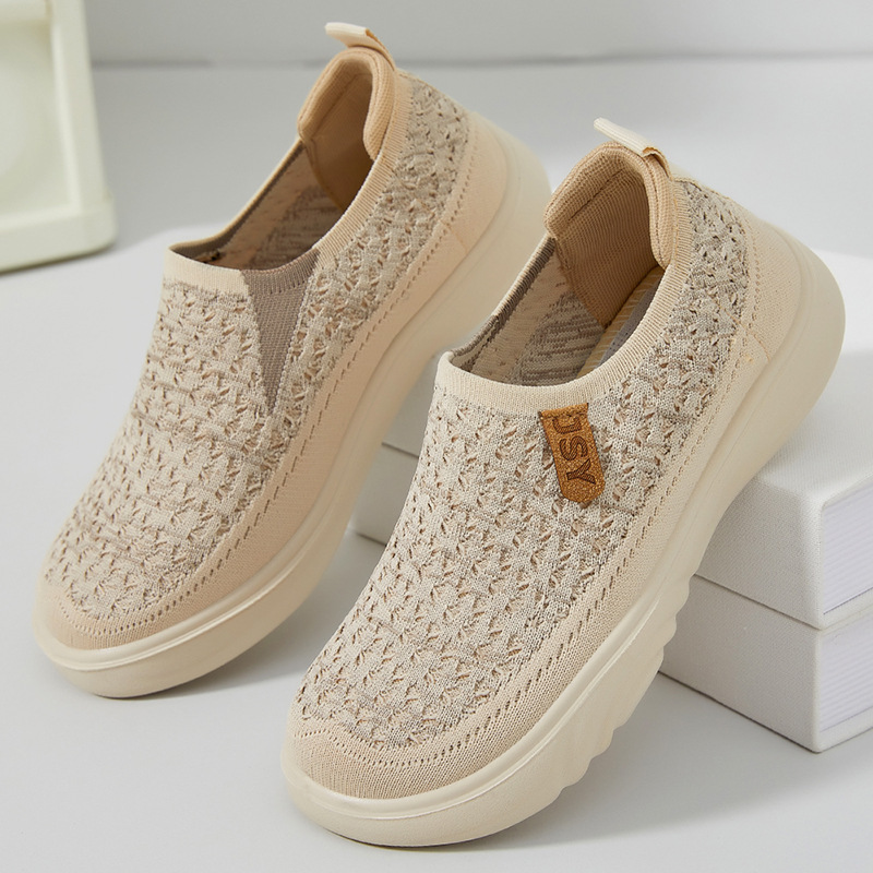 shoes women's shoes all-matching spring new casual shoes soft bottom not tired feet mom shoes middle-aged and elderly flying woven breathable shoes