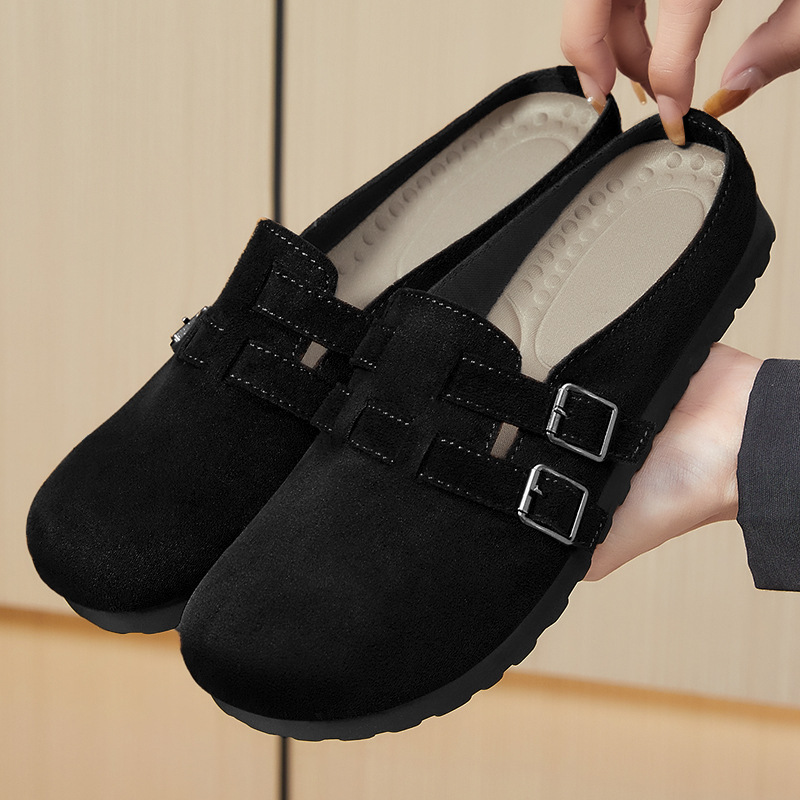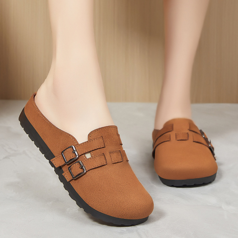 women's shoes new fashion birkenstock slip-on polyurethane toe cap semi slipper outer wear flat casual shoes wholesale