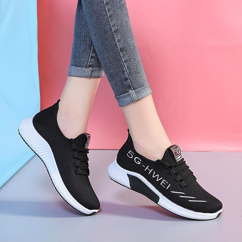 new fly-knit sneakers women's spring, summer and autumn soft bottom breathable mesh running shoes fashionable versatile korean style coconut shoes