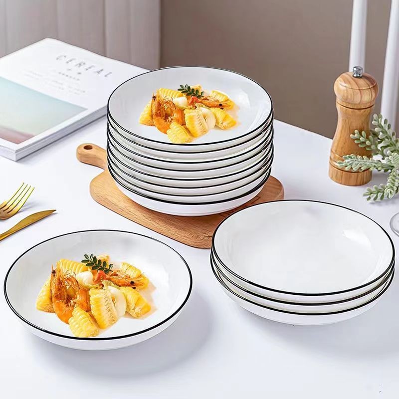 slight flaw pure white black edge 8-inch meal tray approximately 20.2*3.6cm 1 box of 60 pieces