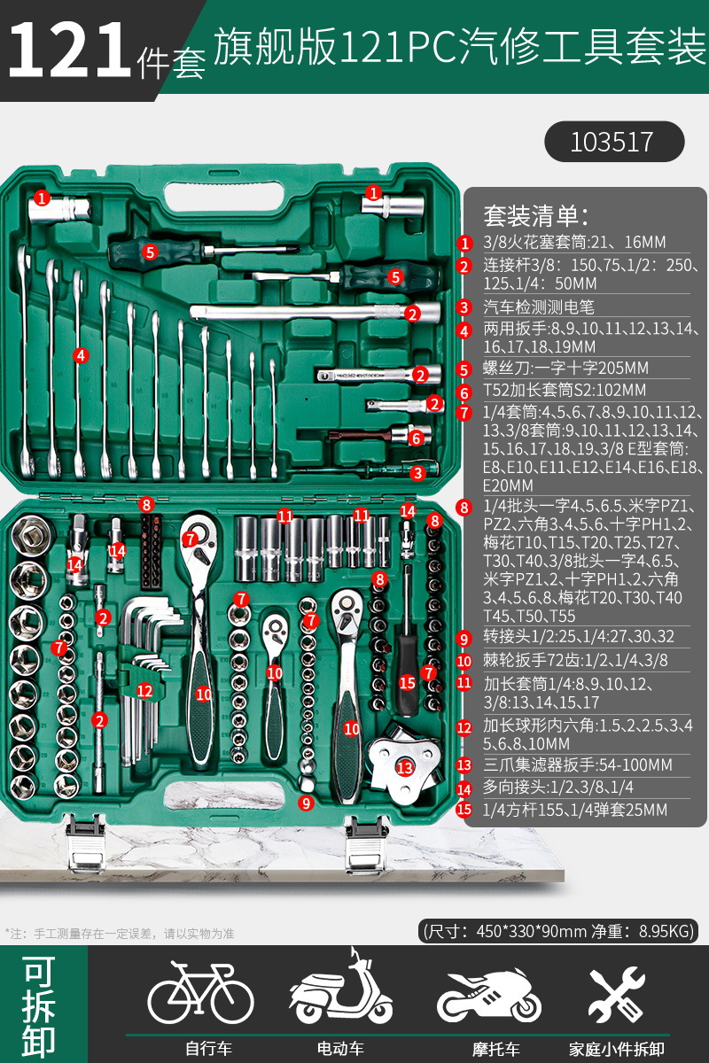 103517 [ultimate 72 teeth] ratchet wrench reinforced 1/2 big fly 121-piece set