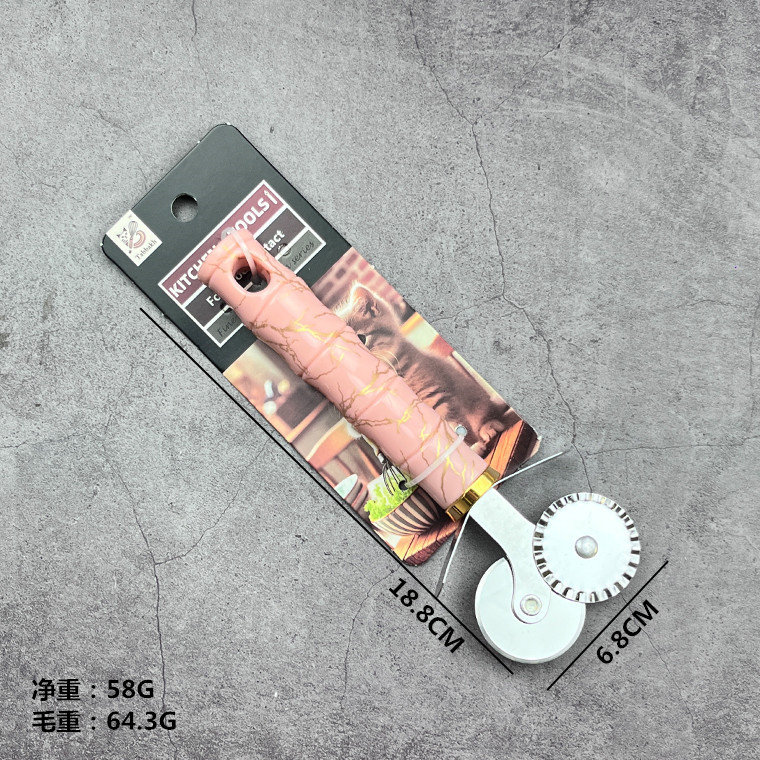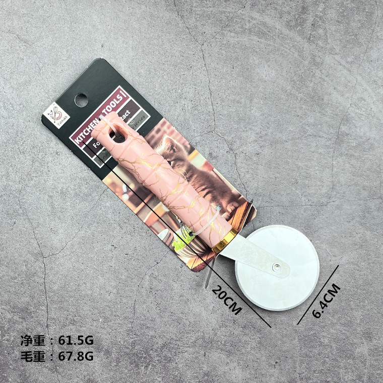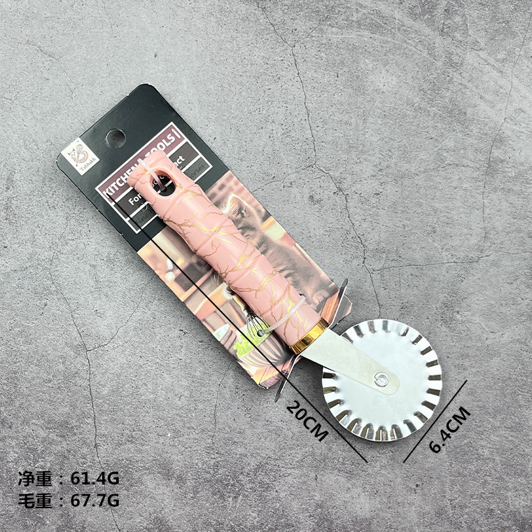 pink bamboo section handle round wheel pizza cut