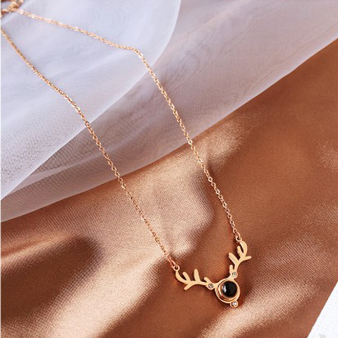 3 zircon antlers titanium steel non-fading rose gold color