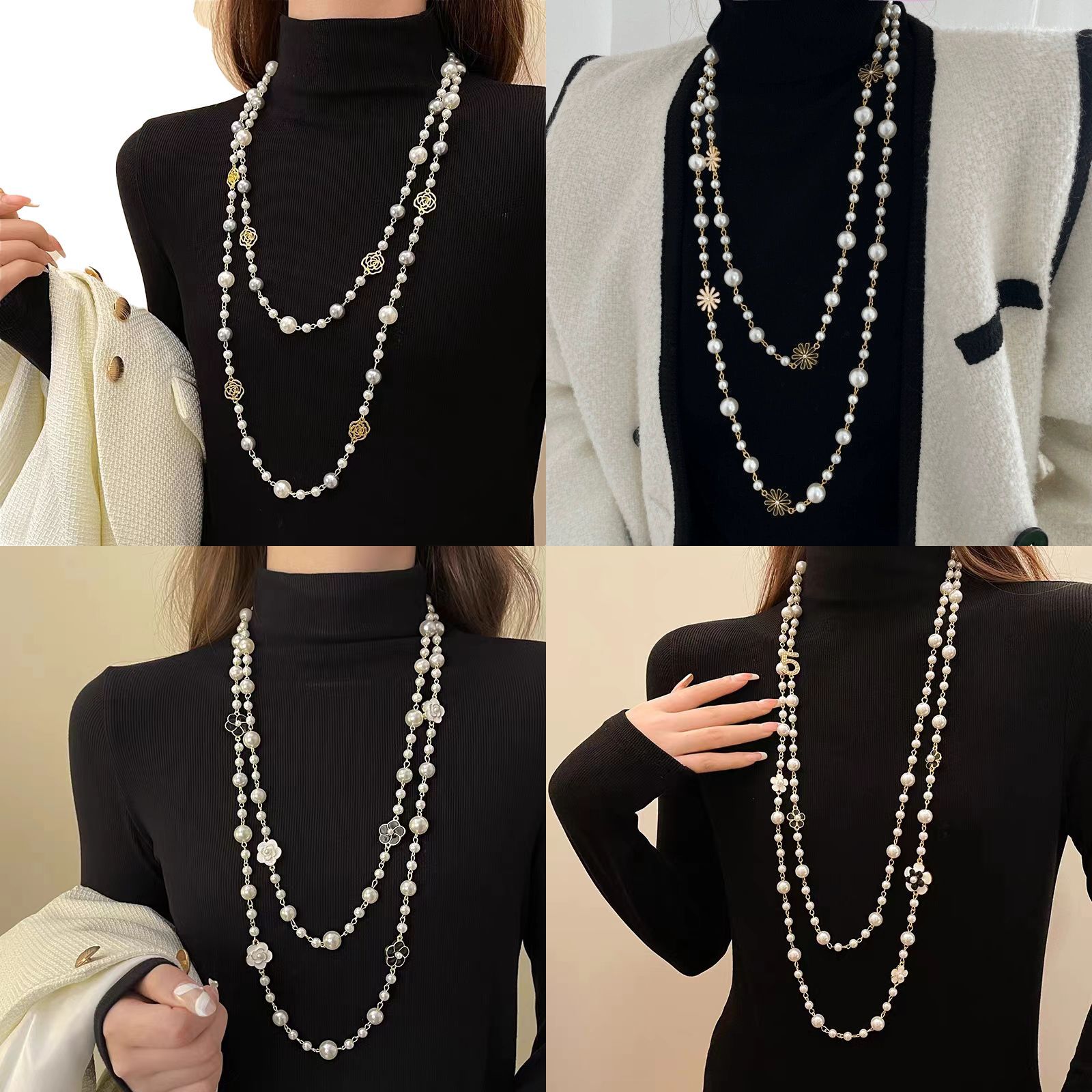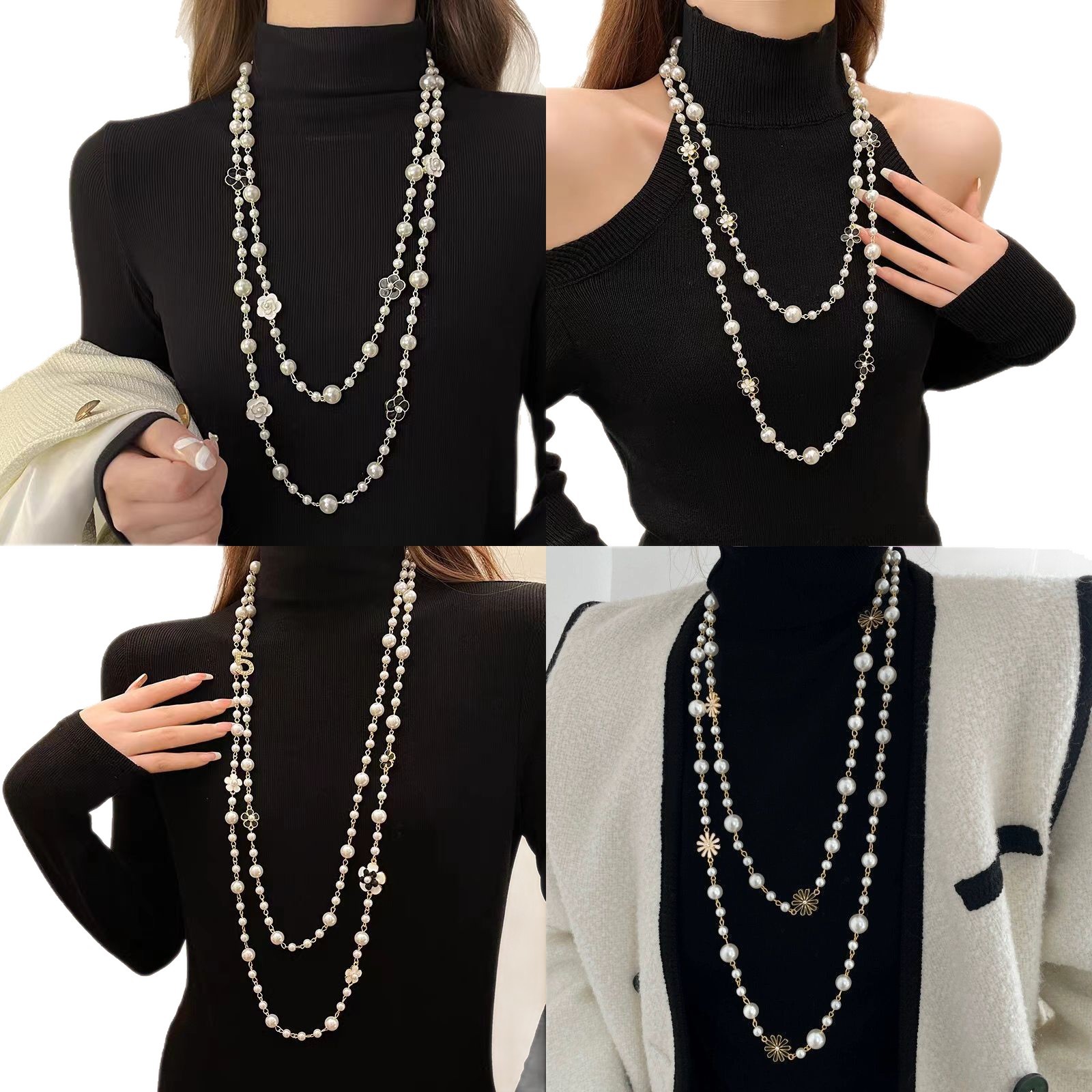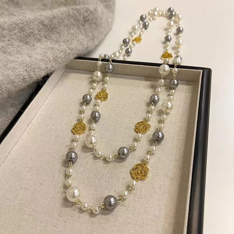 (160cm) series handmade glass pearl necklace multi-layer stackable long women's sweater chain autumn and winter ornament