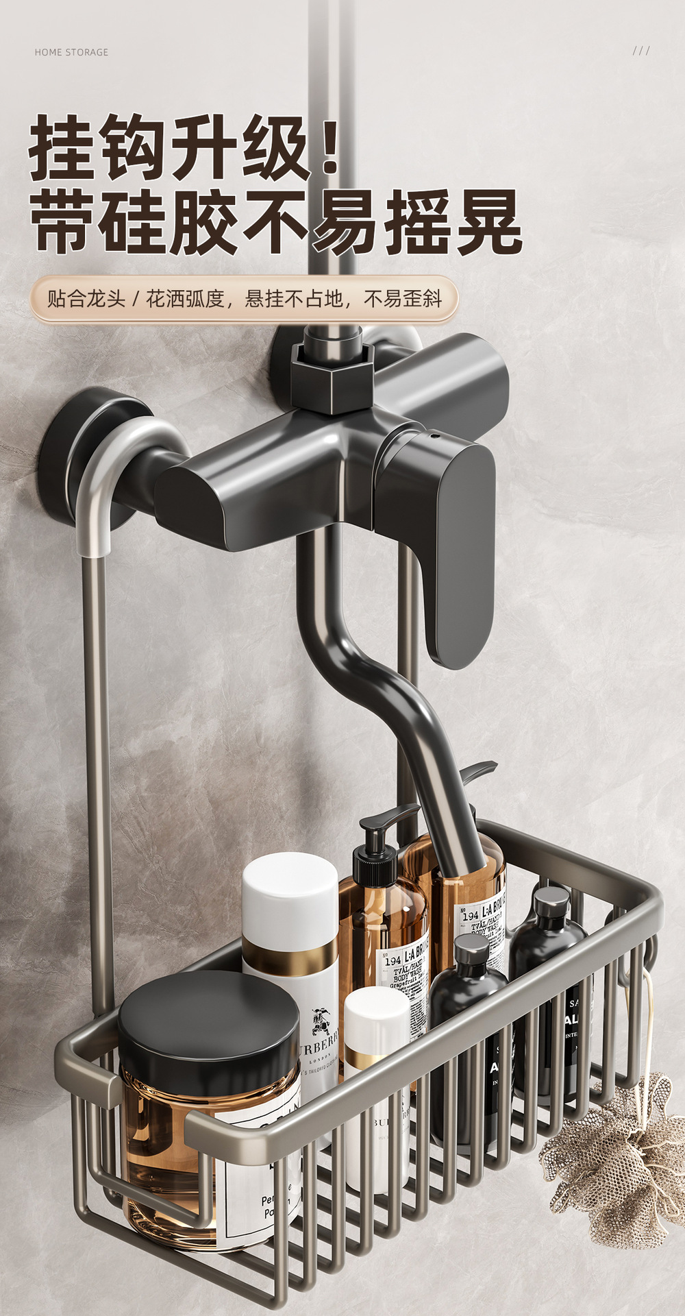 color: shower faucet hanging basket 30cm with hook-gun gray, shower dragon