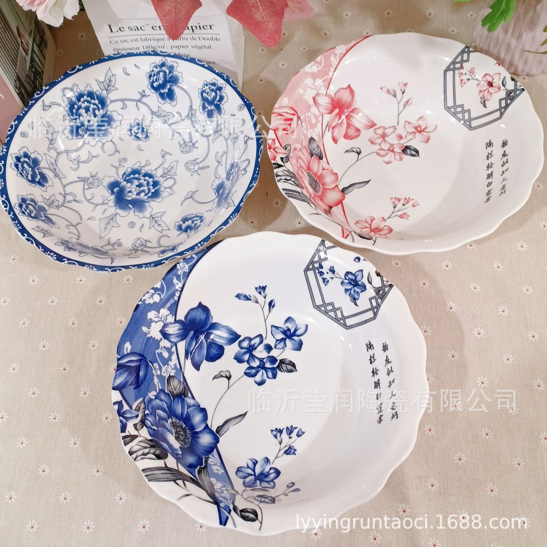 临沂市兰山区莹润陶瓷批发中心 经销批发的青花碗、青花汤古、金花护边碗韩式碗、白口黑口汤古、金花饭盘、彩虹碗盘、4.5英寸大足碗、芝士黑口碗盘、9英寸白口黑口汤古、如意金花盘畅销消费者市场,在消费者当中享有较高的地位,公司与多家零售商和代理商建立了长期稳定的合作关系。