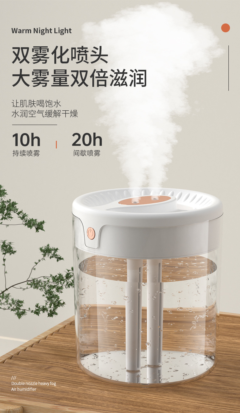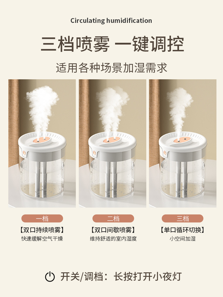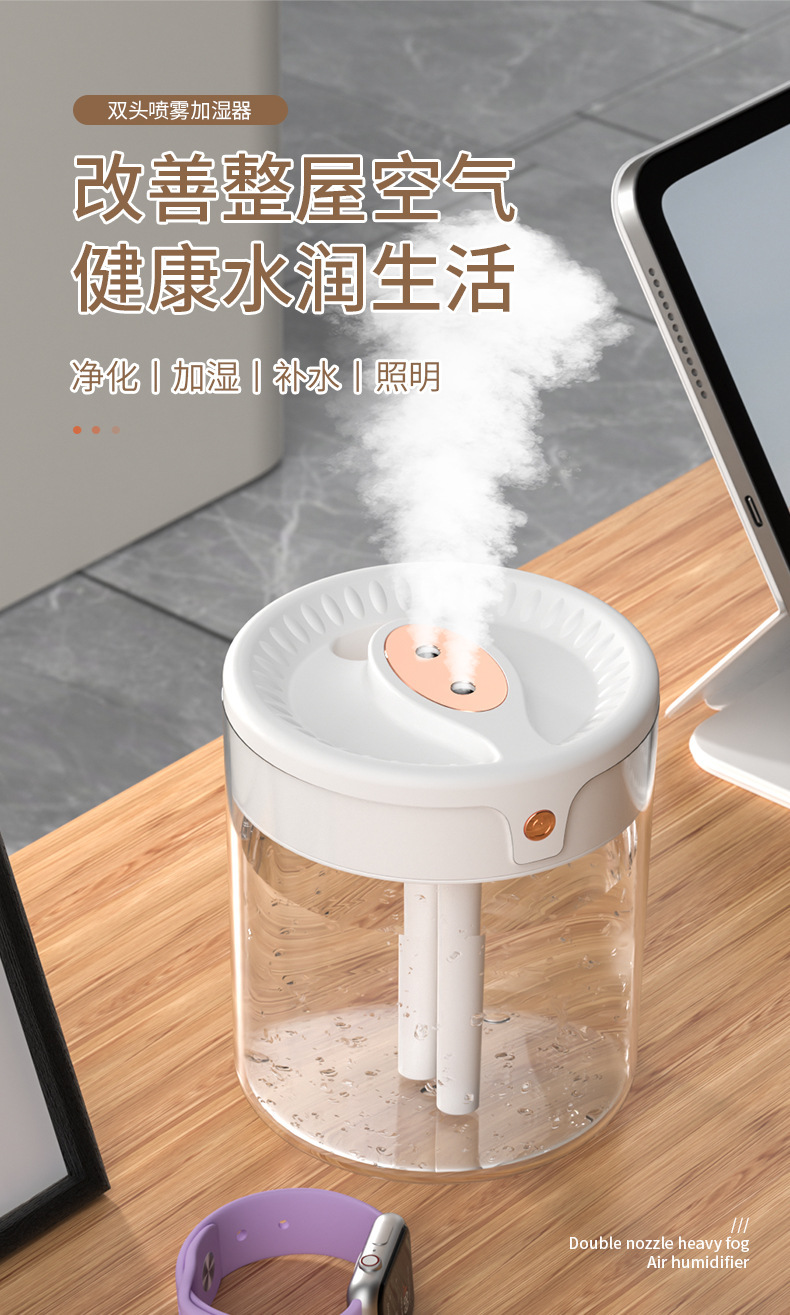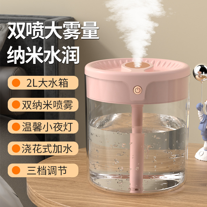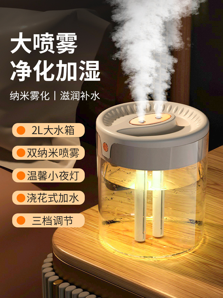 factory cross-border large capacity humidifier atomizer double nozzle lighting bedroom living room air conditioning humidification live broadcast foreign trade