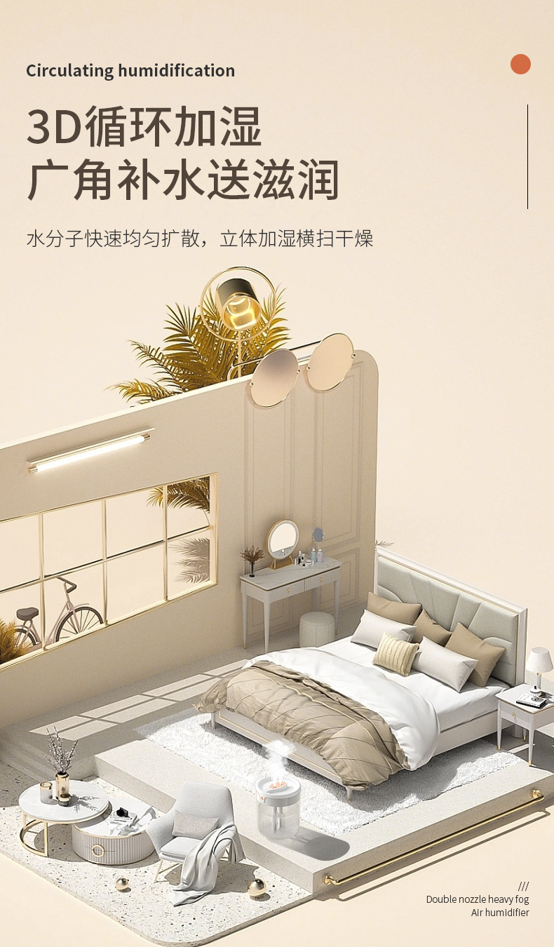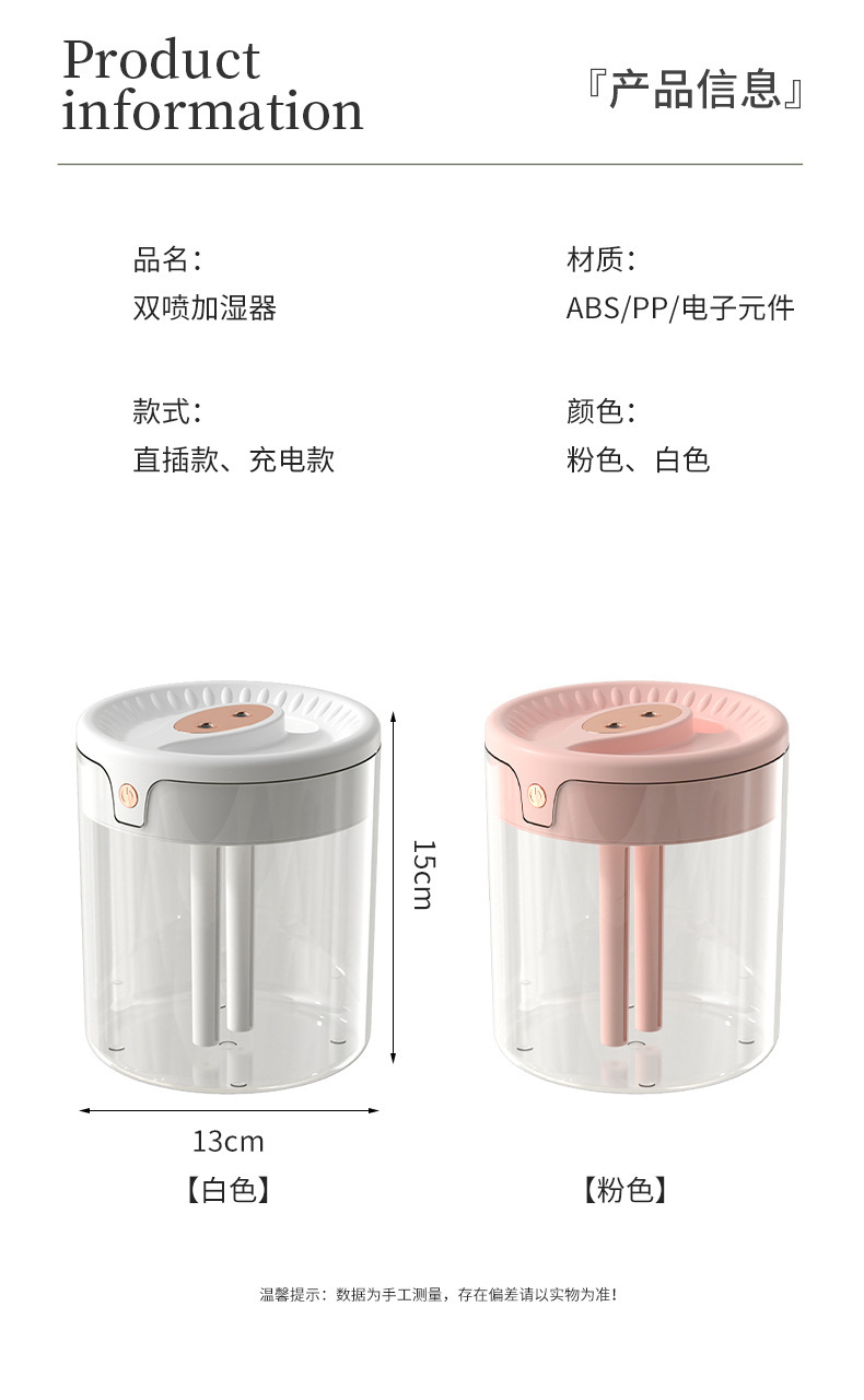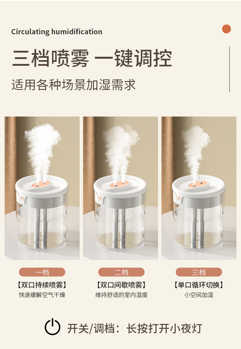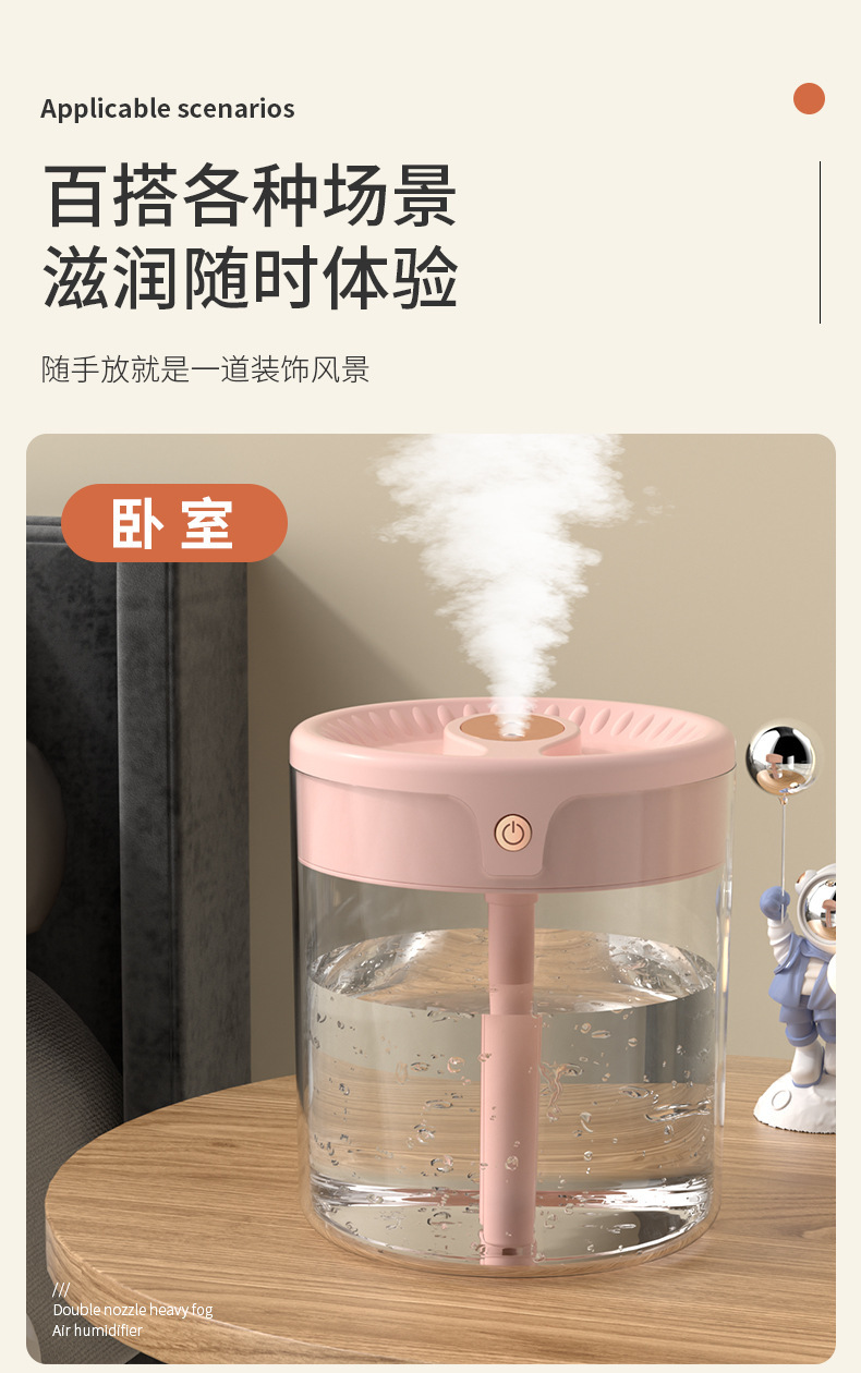 factory cross-border large capacity humidifier atomizer double nozzle lighting bedroom living room air conditioning humidification live broadcast foreign trade