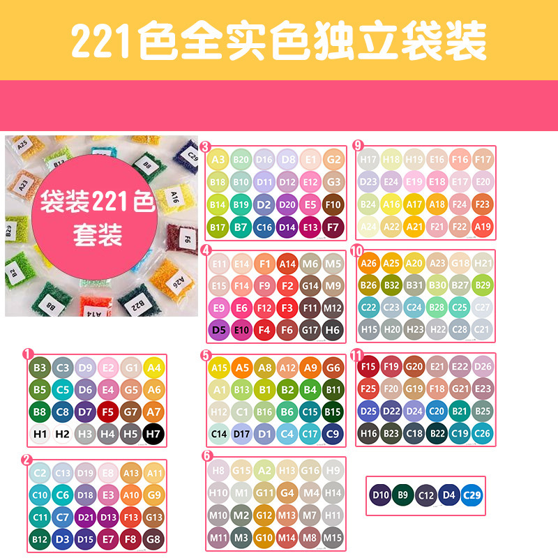 221 colors [half a jin per bag], 221 bags in total