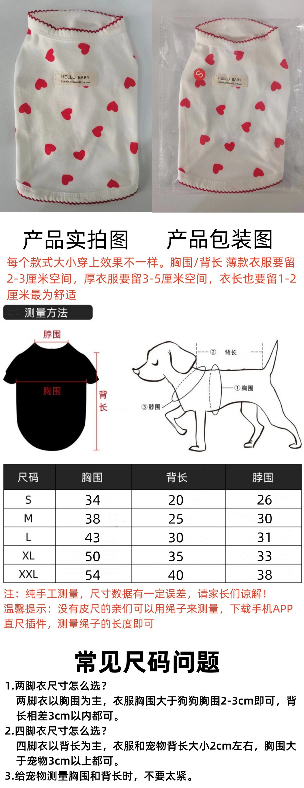 Friendship Tip: For dog and cat clothes with two legs, the chest circumference is the standard, and for four-legged clothes, the back length is the standard. Weight cannot be used as the standard for purchase.
