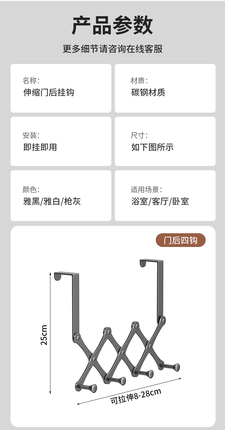 elegant black 4 hooks