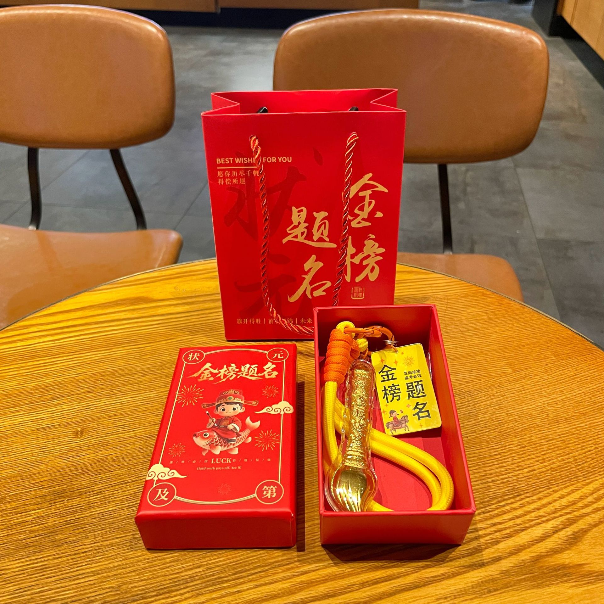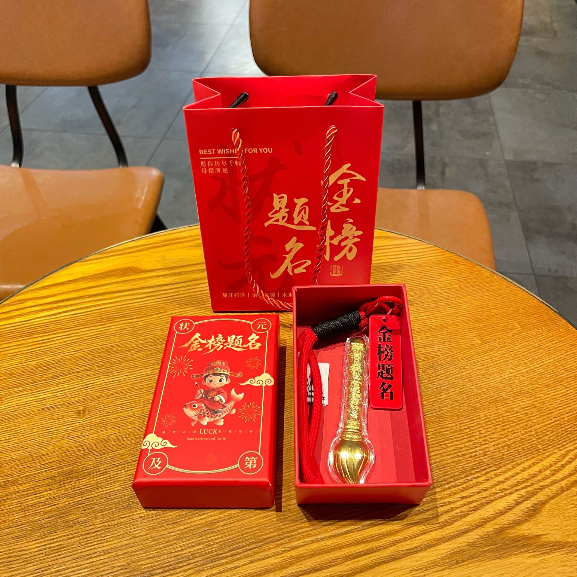 gold foil pen-#4 red pass every exam + zhuangyuan gift box + zhuangyuan gift bag