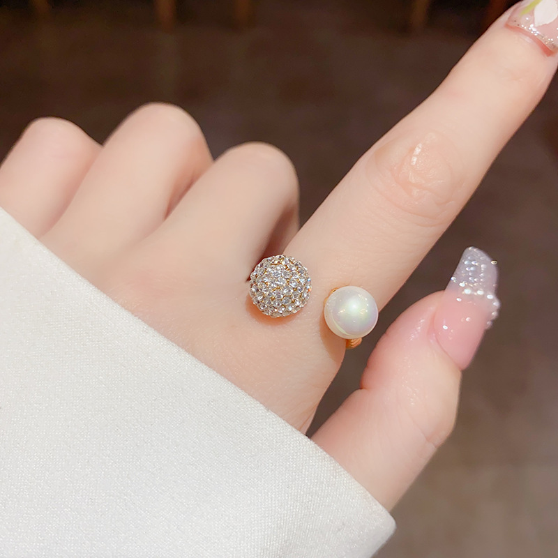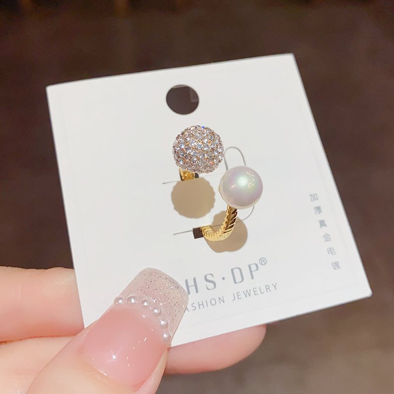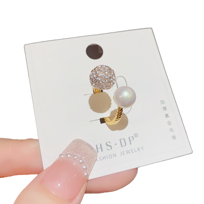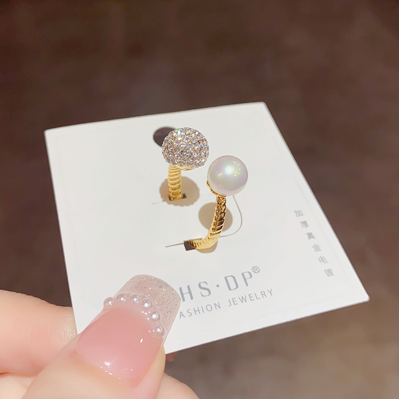round zircon pearl open-end pearl ring (thickened true gold plating)
