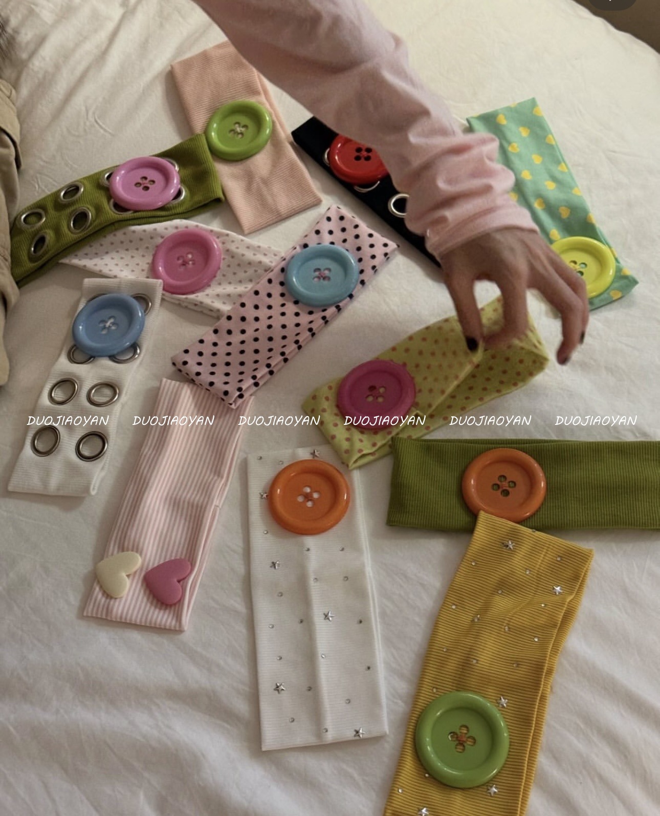 【Material】Polyester hairband + plastic buttons