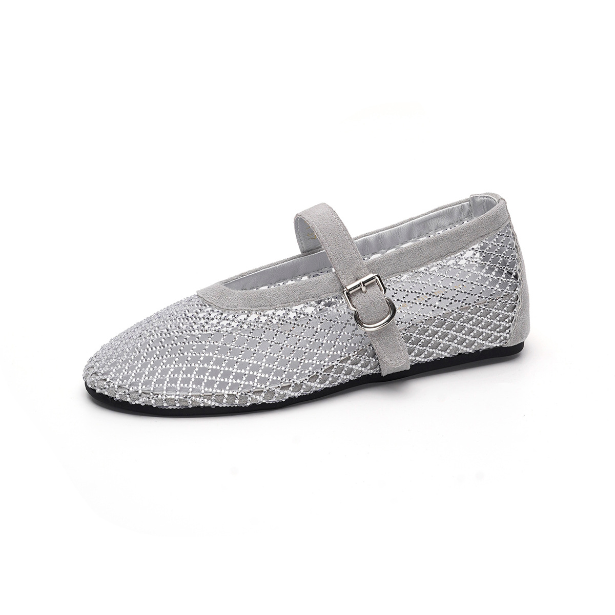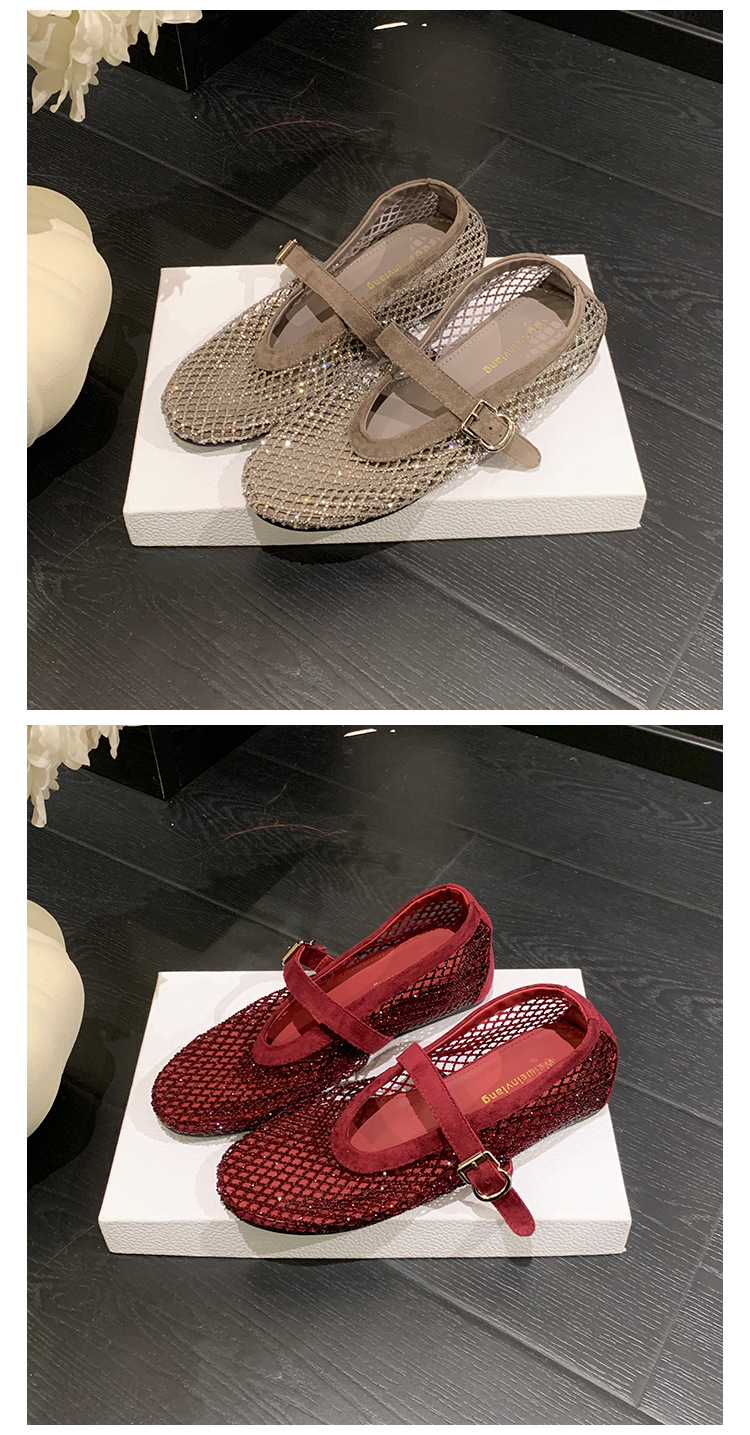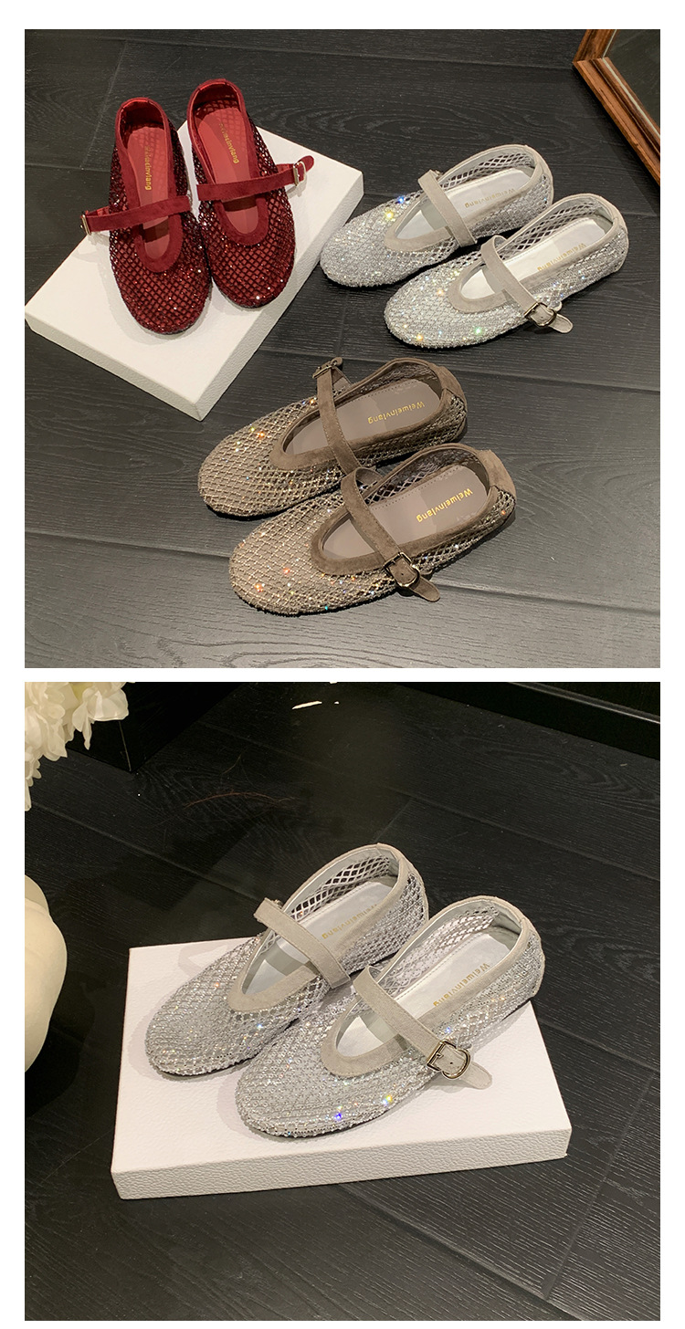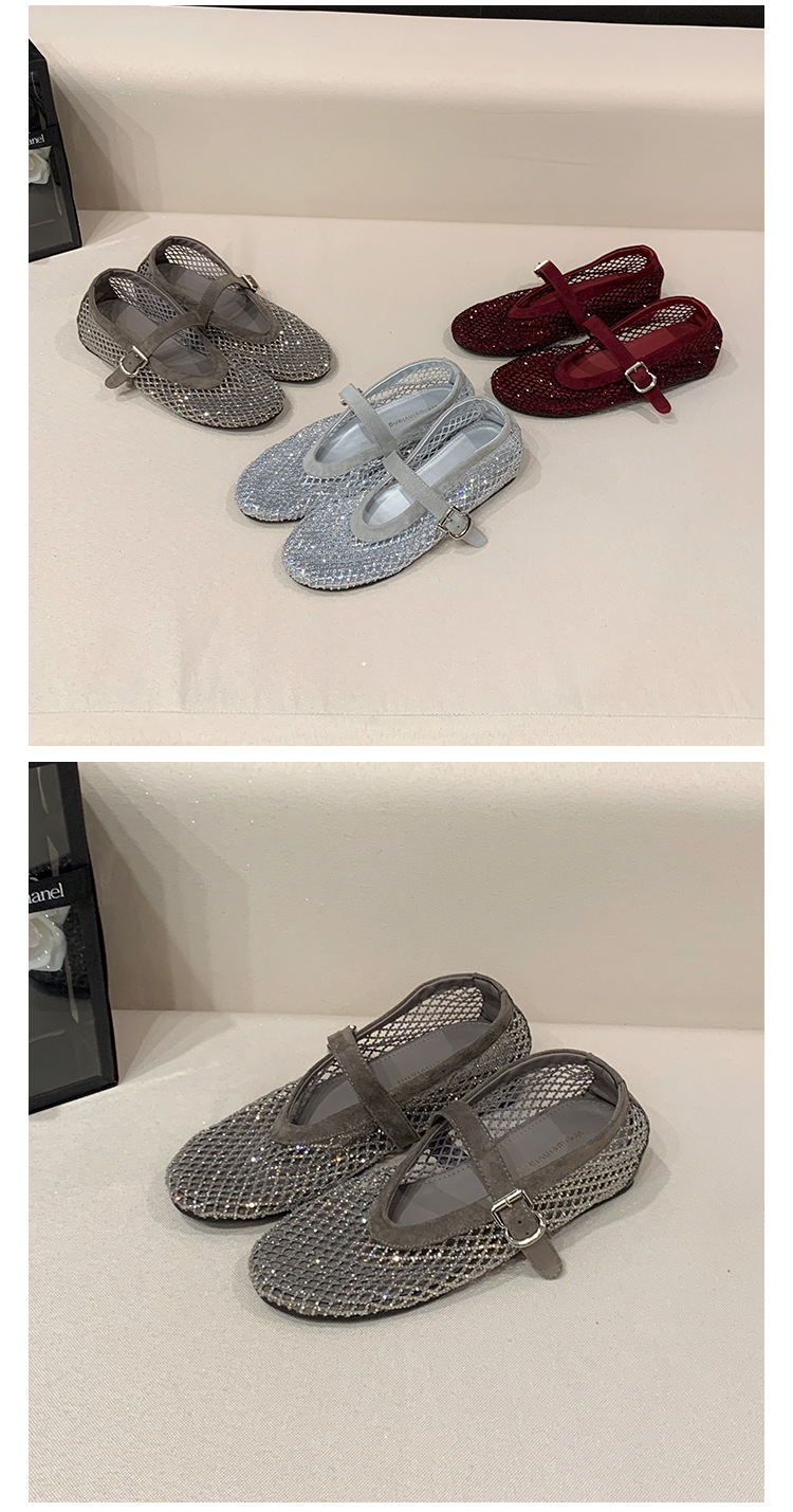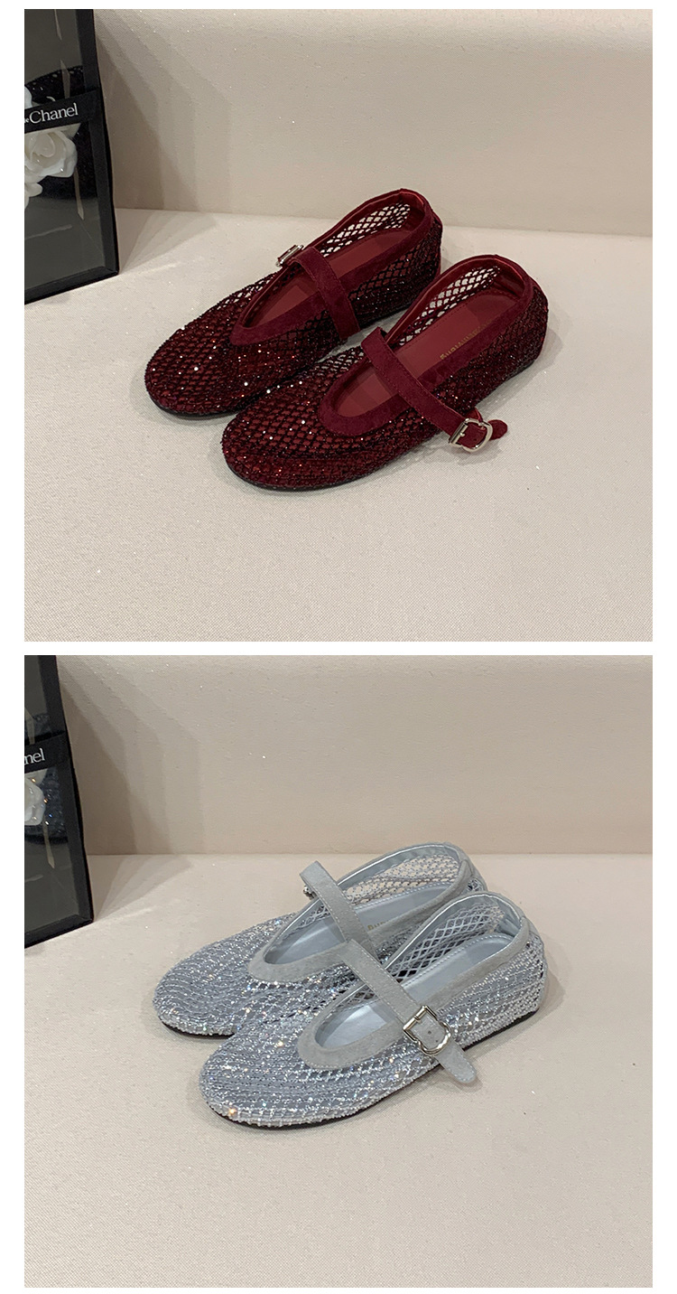 weiwei girl 3368-1 height increasing insole rhinestone mesh shoes women's flat mary jane hollow sandals fishnet shoes