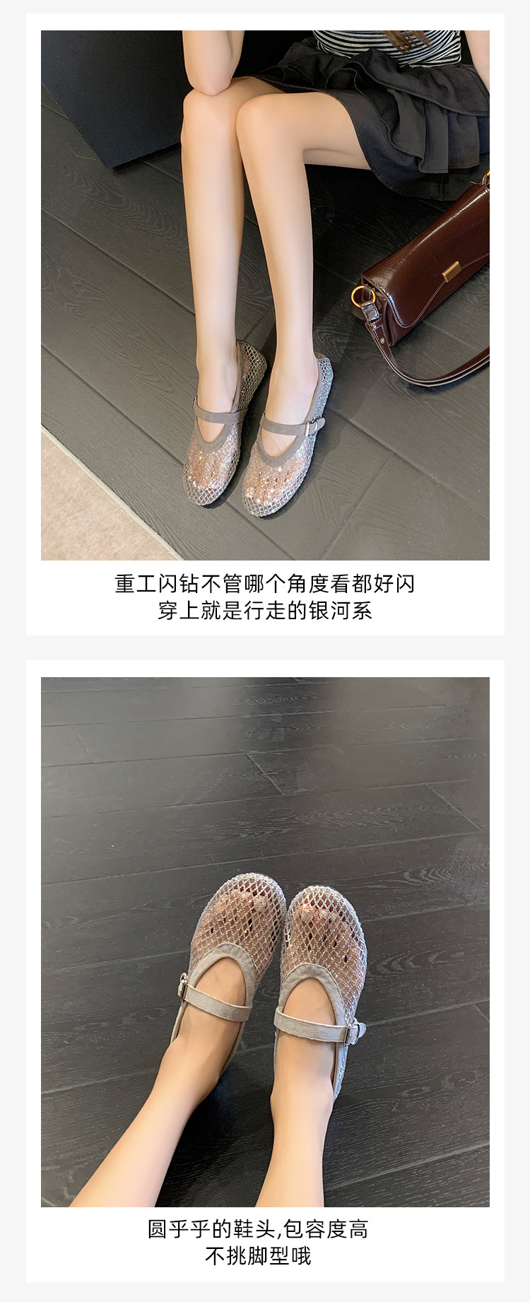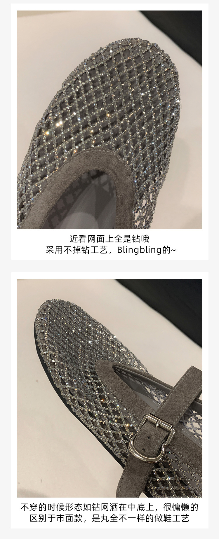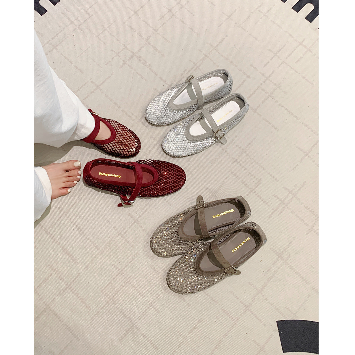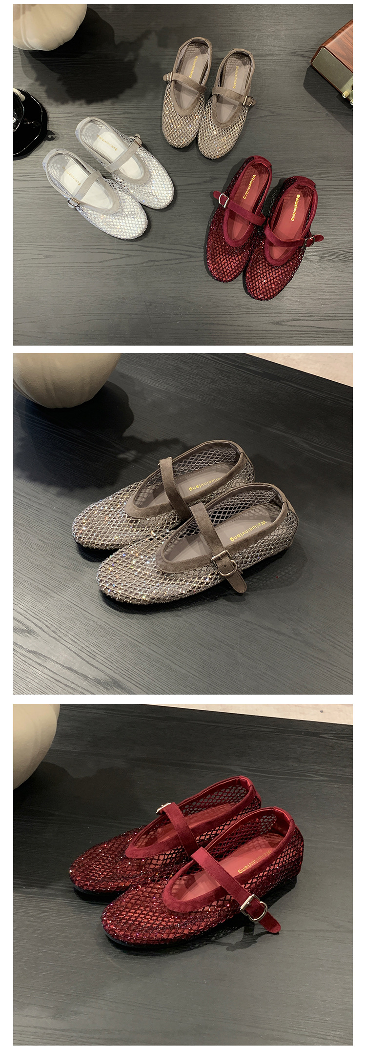 weiwei girl 3368-1 height increasing insole rhinestone mesh shoes women's flat mary jane hollow sandals fishnet shoes