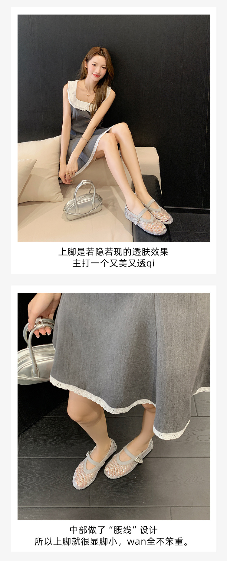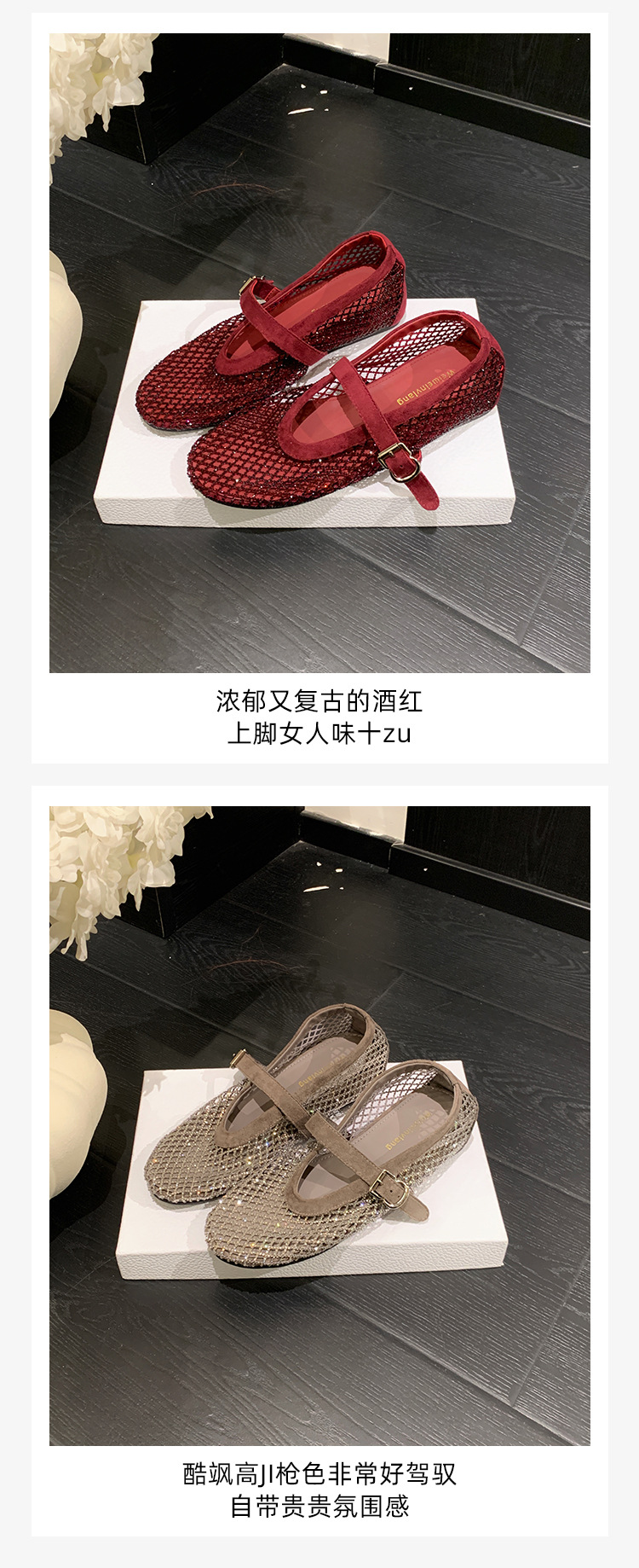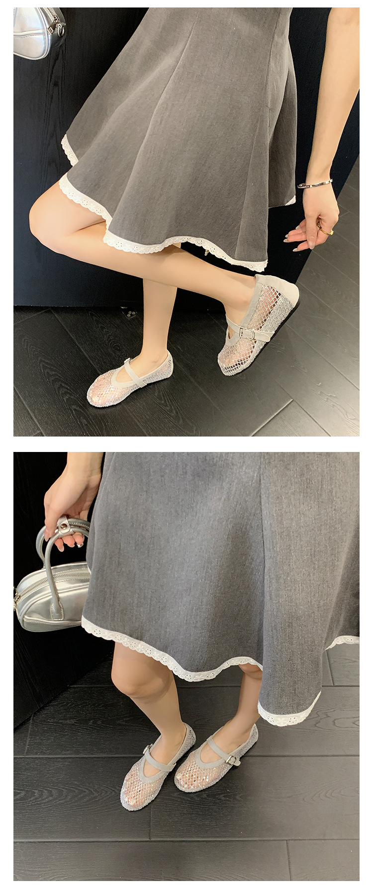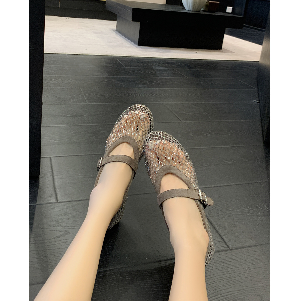 weiwei girl 3368-1 height increasing insole rhinestone mesh shoes women's flat mary jane hollow sandals fishnet shoes