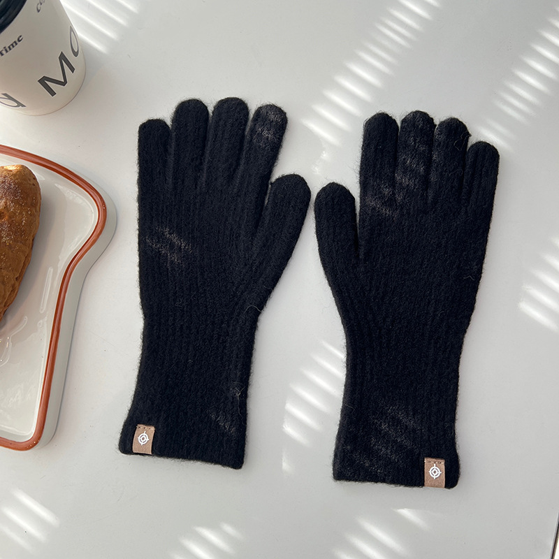 Korean short-fingered wool blend touch screen gloves for winter cycling, knitted thickened warm and exposed fingers, machine washable