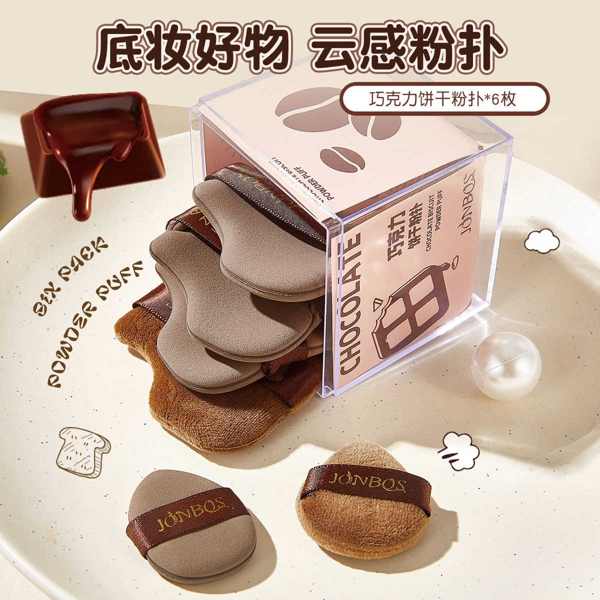 JONBOS巧克力粉扑6个装(盒装)