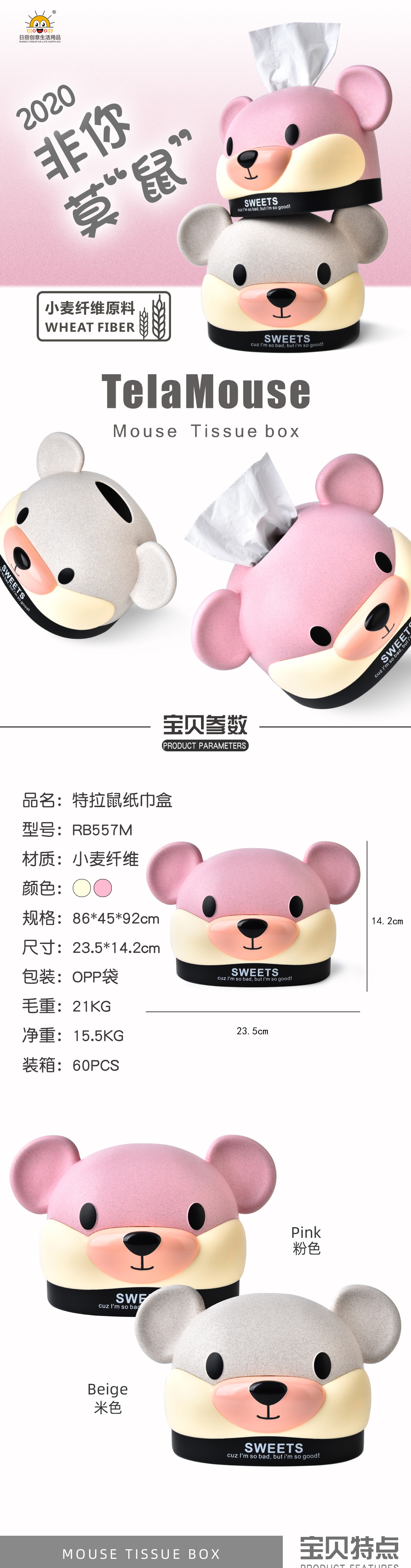 Product Material: Wheat FiberProduct color: Pink, Beige