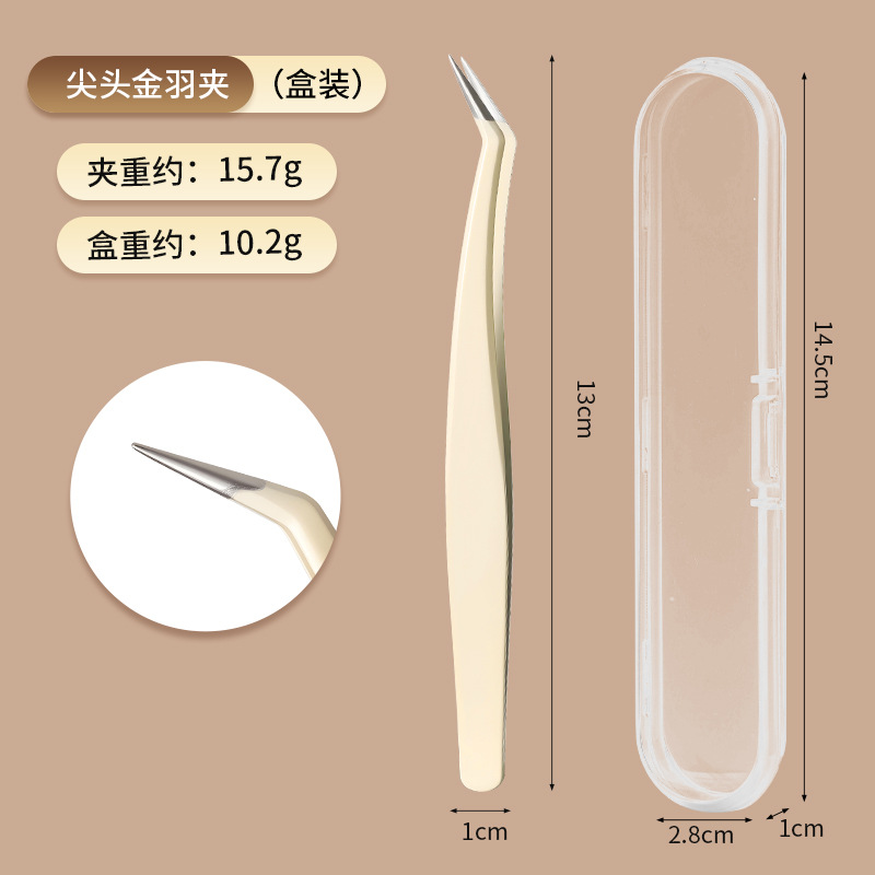 奶白色尖头金羽夹(盒装)