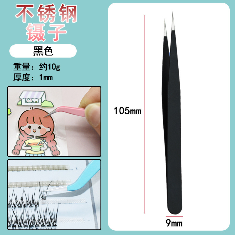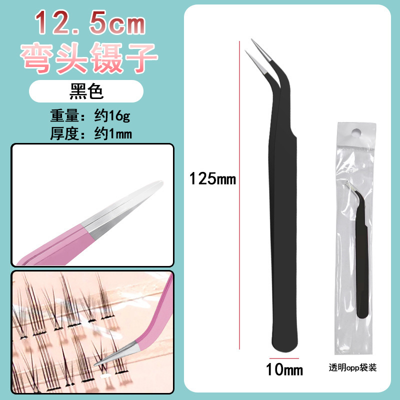 中号11.5cm弯头尖嘴镊子(黑色)