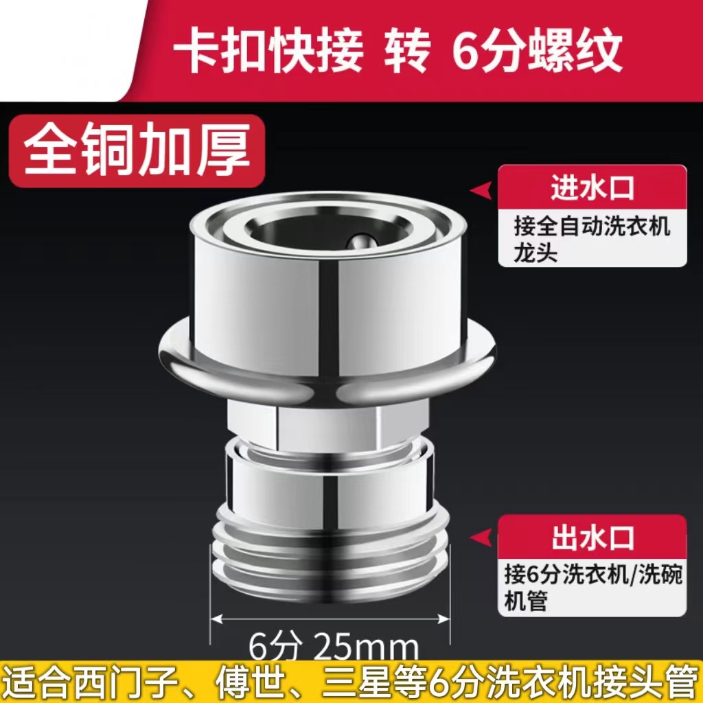 快接头转4分/6分通用*【西门子等6分洗衣机可用】(全铜)