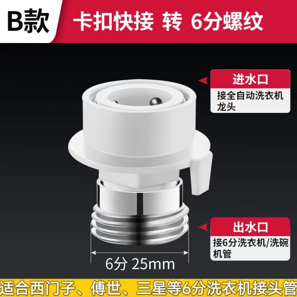 【西门子等6分洗衣机可用】*快接头转6分螺纹(ABS塑料+铜)