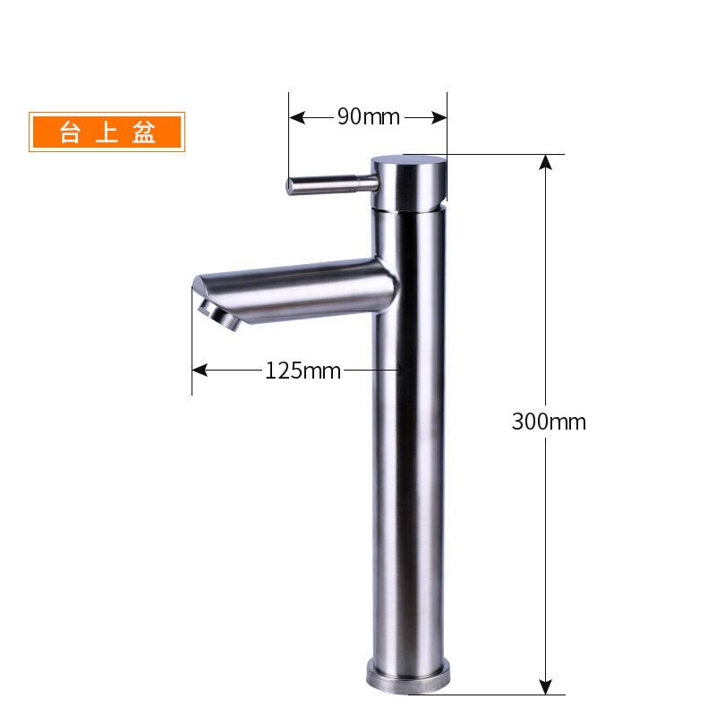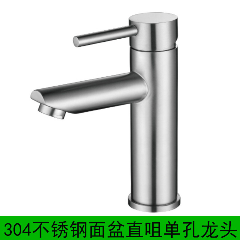 304面盆直咀冷热单孔龙头加高